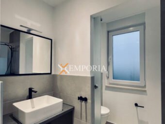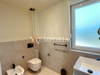 Godina izgradnje 2022. Ukupno 6 stanova u zgradi. Gradnja ciglom. Termoizolacija fasade 10 cm stiropor. Podne obloge su pločice. Salamander PVC stolarija s roletama. Na staklenim stijenama su rolete električne. Sustav grijanja i hlađenja putem dizalica topline. Uređaji za grijanje i hlađenje raspoređeni su u dnevnom boravku i u svakoj spavaćoj sobi po jedan. Nadalje, podno grijanja na struju u kupaonicama. Također, napravljene su instalacije za solarne panele. Na terasi je roštilj. Ulazna vrata su protuprovalna i protupožarna.