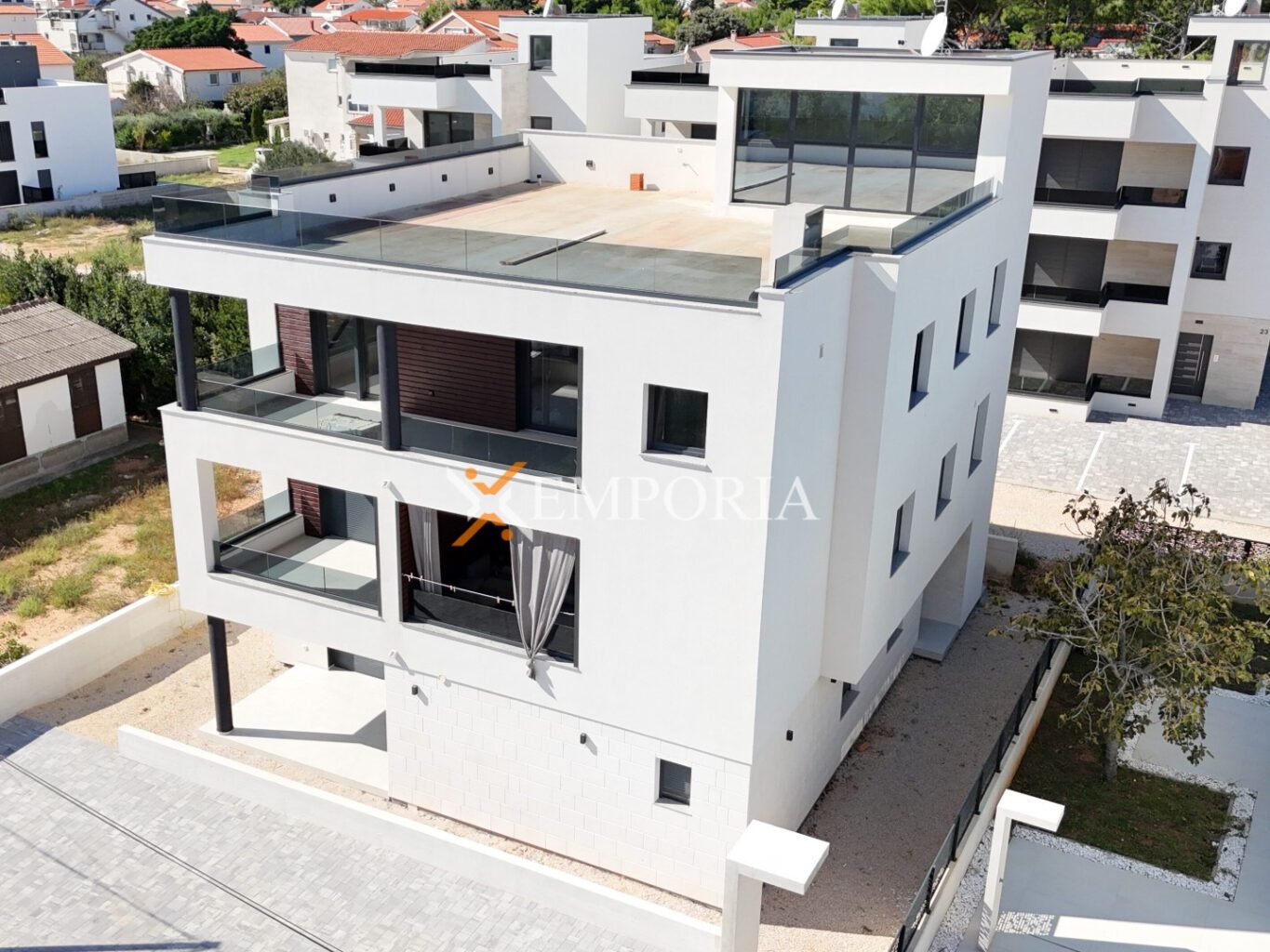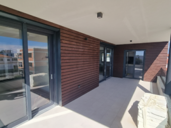 Ovo je penthouse na drugom katu zgrade. Raspored prostorija čine hodnik, 2 spavaće sobe, spavaća soba s kupaonicom, kupaonica, wc, garderoba, spremište, kuhinja s blagovaonicom i dnevnim boravkom te lođa. Neto korisna površina opisanog iznosi 125,34 m2. Dodatno apartmanu pripadaju krovna terasa površine 97,42 te parkirališno mjesto.