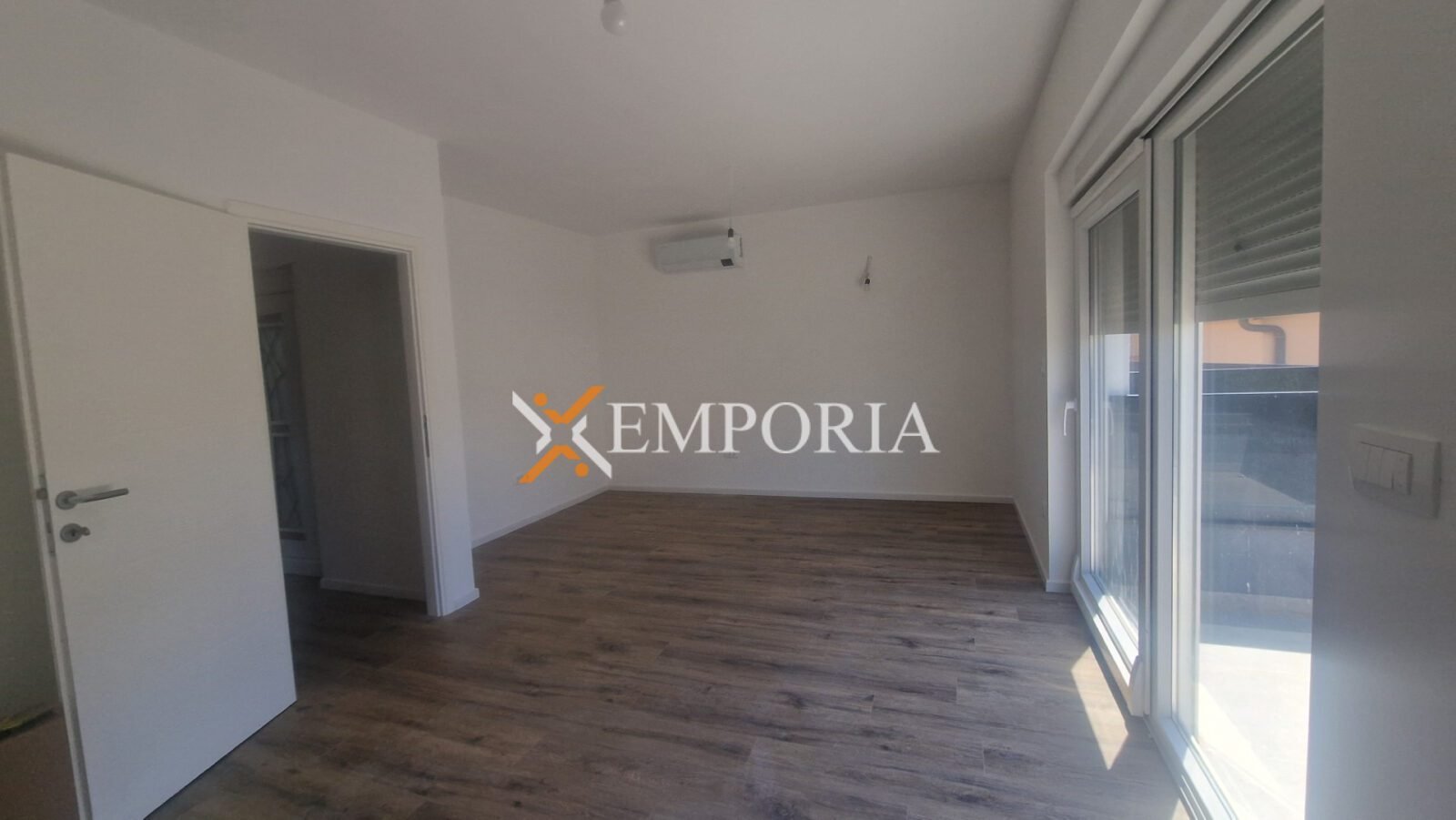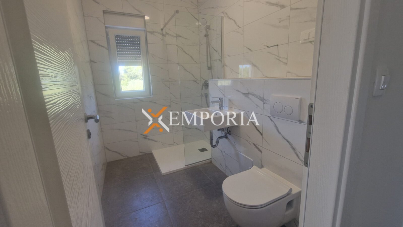 Ovo je apartman na prvom katu. Raspored prostorija čine hodnik, 2 spavaće sobe, kupaonica, kuhinja s blagovaonicom i dnevnim boravkom te natkrivena terasa. Neto površina opisanoga iznosi 52,55 m2. Dodatno apartmanu pripadaju 2 parkirališna mjesta. Ovaj stan ima zaseban ulaz.