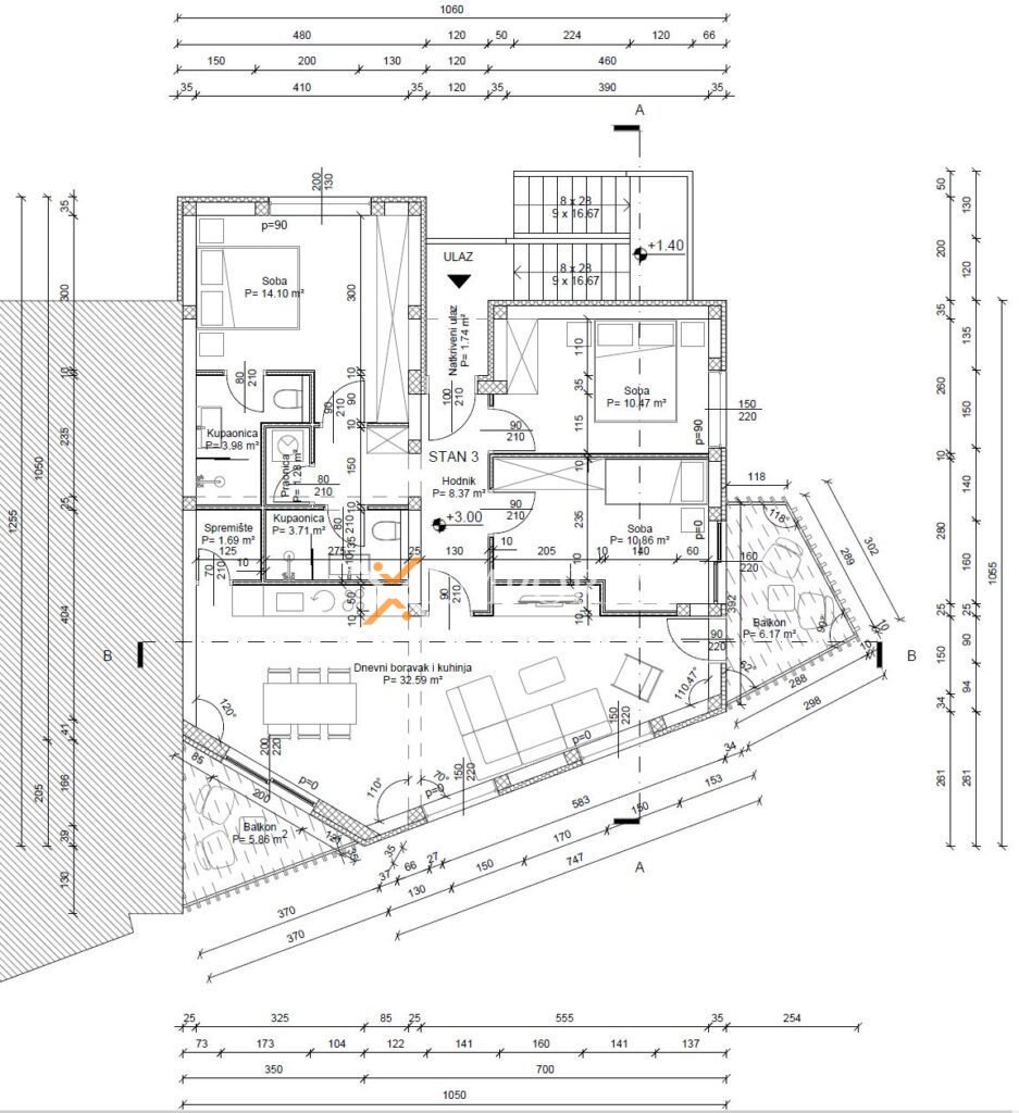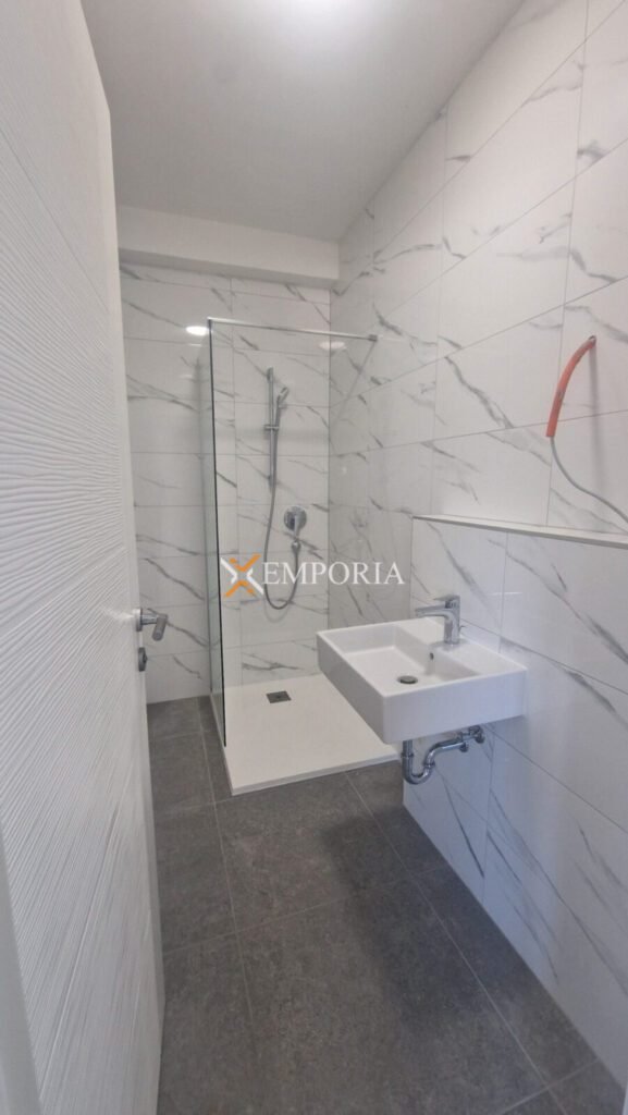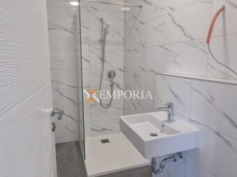 Ovo je apartman na prvom katu. Raspored prostorija čine hodnik, 2 spavaće sobe, još jedna spavaća soba s vlastitom kupaonicom, kupaonica, kuhinja s blagovaonicom i dnevnim boravkom, ostava i praonica, te 2 nenatkrivene terase. Neto površina opisanoga iznosi 82,55 m2. Dodatno apartmanu pripadaju 2 parkirališna mjesta i vrt od ca. 20 m2. Ovaj stan ima zaseban ulaz.