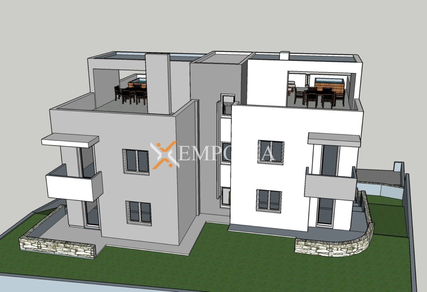 U zgradi se nalaze ukupno 4 stana. Udaljenost od centra mjesta iznosi svega 400 m.