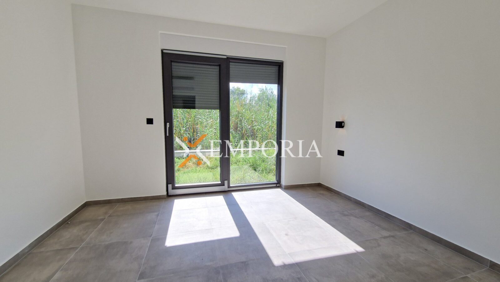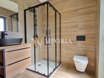 Gradnja je izvršena ciglenim termo blokom. Fasada ima termoizolaciju od stiropora debljine 10 cm. Podne obloge su pločice. Prozori su od PVC materijala s troslojnim staklom, roletama i komarnicima. Dnevni boravak i spavaće sobe su klimatizirani. U cijelom stanu je provedeno podno grijanje na struju. Ulazna vrata stana su protuprovalna i protupožarna.