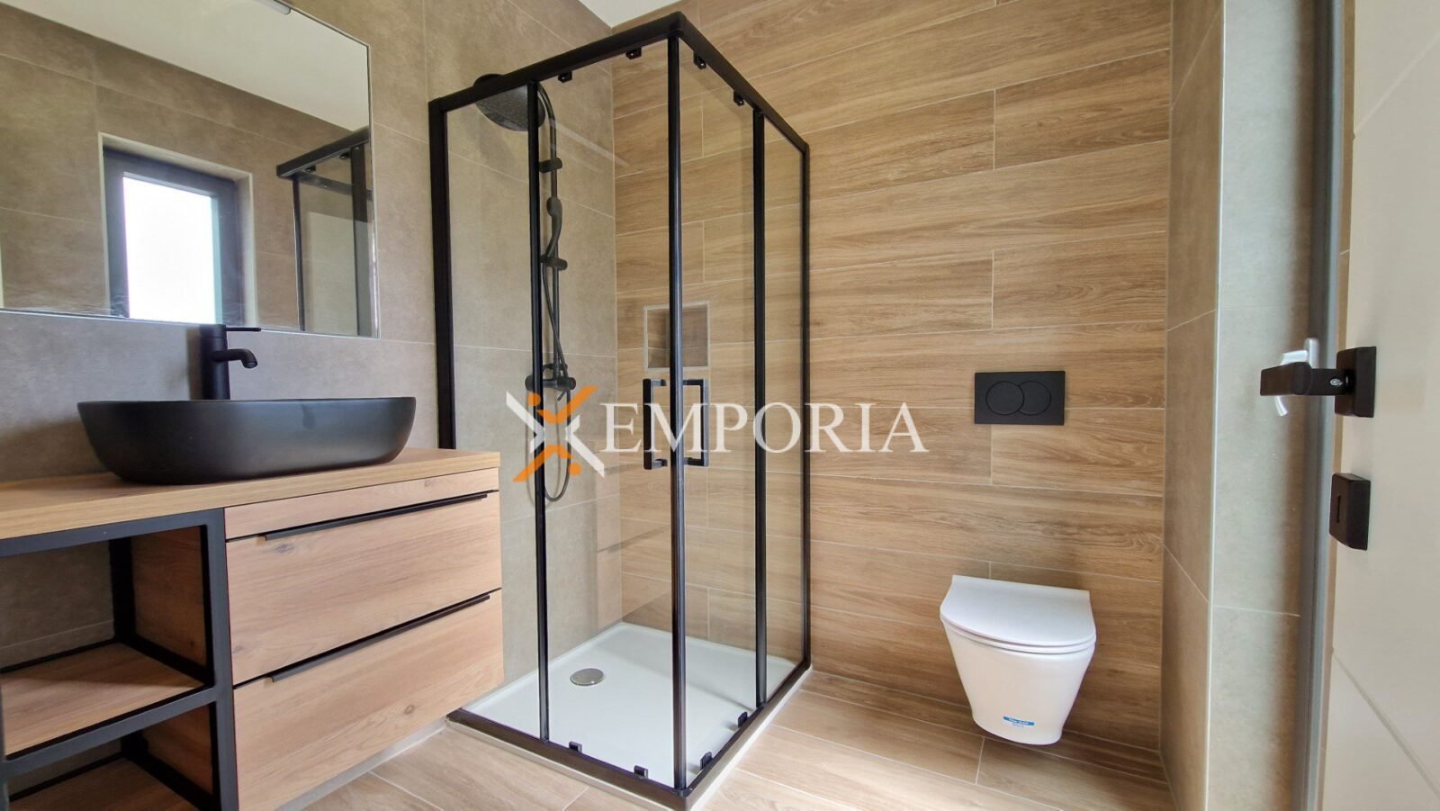 Prodaje se odličan apartman u novogradnji koja je dovršena i odmah useljiva. Zgrada se nalazi svega 70 m od mora, a iz apartmana se pruža i djelomičan pogled na more.