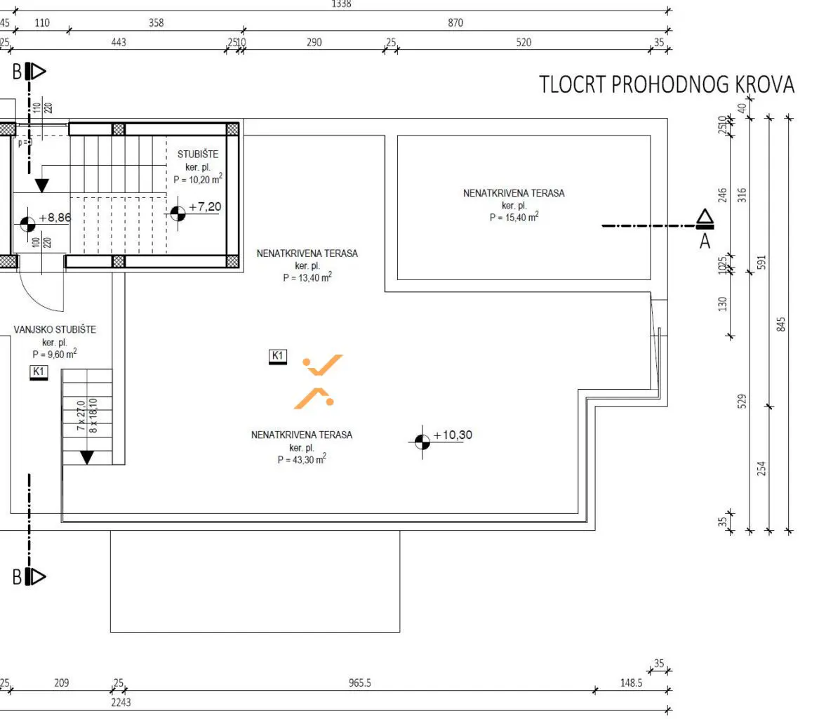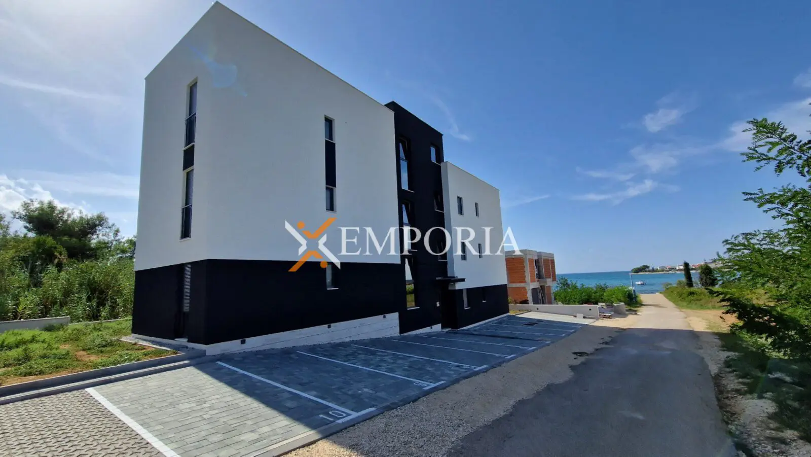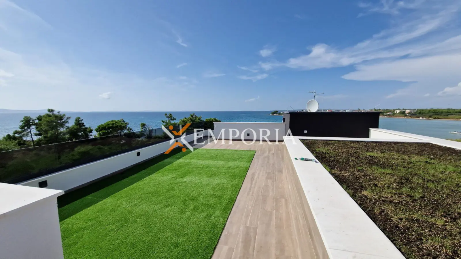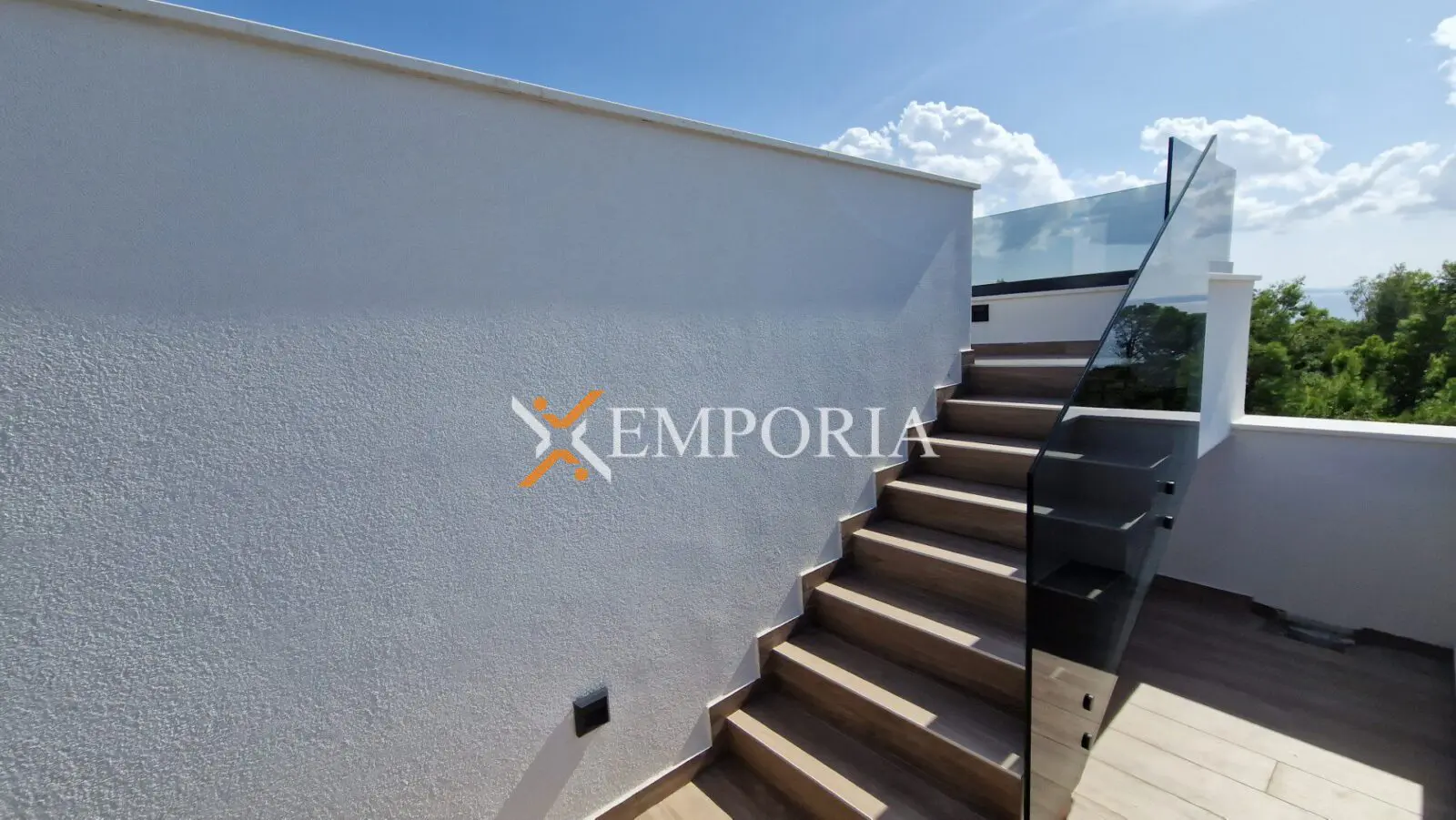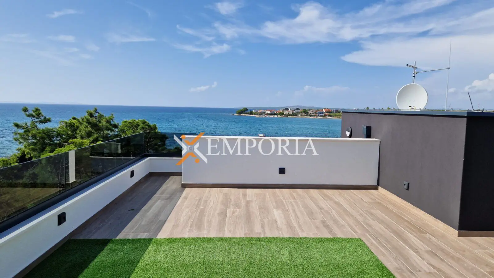 Prodaje se odličan penthouse apartman u novogradnji koja je dovršena i odmah useljiva. Zgrada se nalazi svega 70 m od mora, a iz apartmana, a posebno s krovne terase se pruža prekrasan pogled na more.