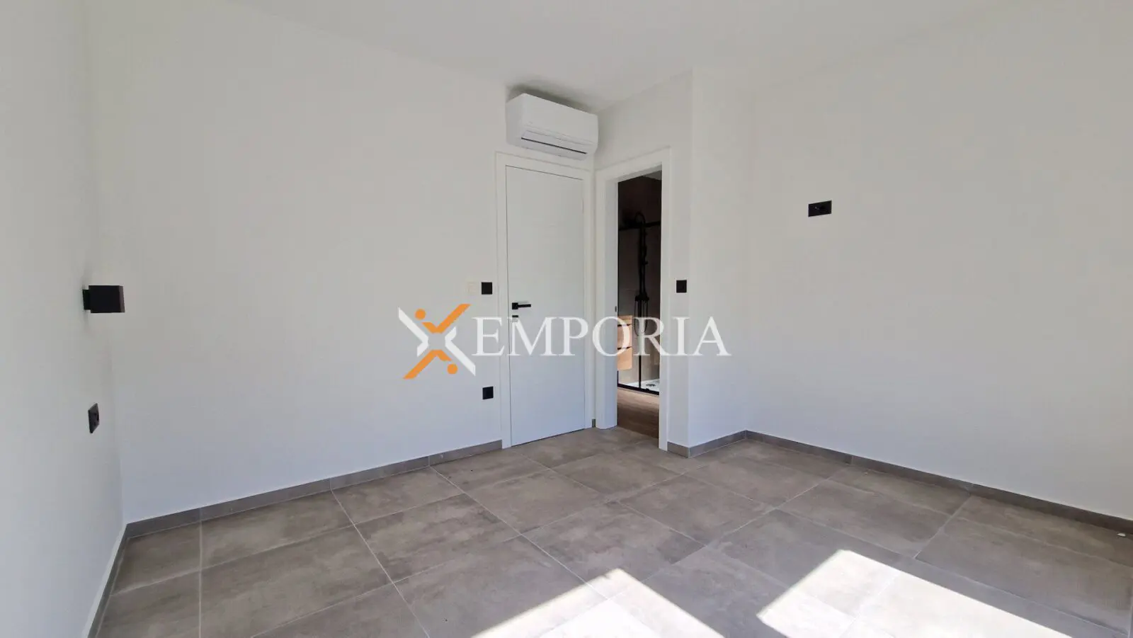 Gradnja je izvršena ciglenim termo blokom. Fasada ima termoizolaciju od stiropora debljine 10 cm. Podne obloge su pločice. Prozori su od PVC materijala s troslojnim staklom, roletama i komarnicima. Dnevni boravak i spavaće sobe su klimatizirani. U cijelom stanu je provedeno podno grijanje na struju. Ulazna vrata stana su protuprovalna i protupožarna.