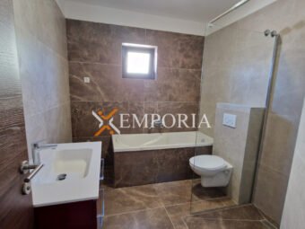 Gradnja je izvršena ciglenim termo blokom. Fasada ima termoizolaciju od stiropora debljine 10 cm. Podne obloge su parket i pločice. Prozori su od PVC materijala s električnim roletama. U cijelom stanu je provedeno podno grijanje preko dizalica topline. Nadalje, sve prostorije su klimatizirane.