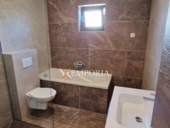 Gradnja je izvršena ciglenim termo blokom. Fasada ima termoizolaciju od stiropora debljine 10 cm. Podne obloge su parket i pločice. Prozori su od PVC materijala s električnim roletama. U cijelom stanu je provedeno podno grijanje preko dizalica topline. Nadalje, sve prostorije su klimatizirane.