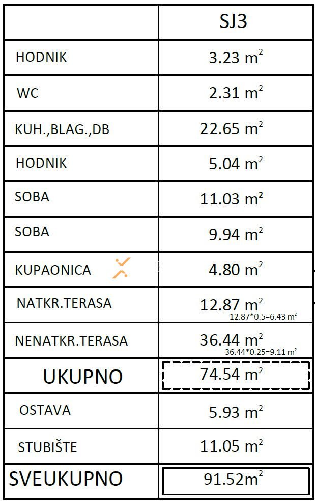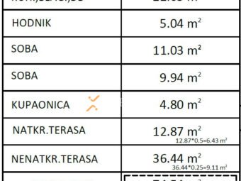 Sveukupna neto korisna površina stana sa svim pripacima iznosi 94,52 m2.