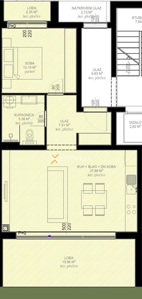 Ukupna neto površina stana sa svim pripacima iznosi 70,80 m2.