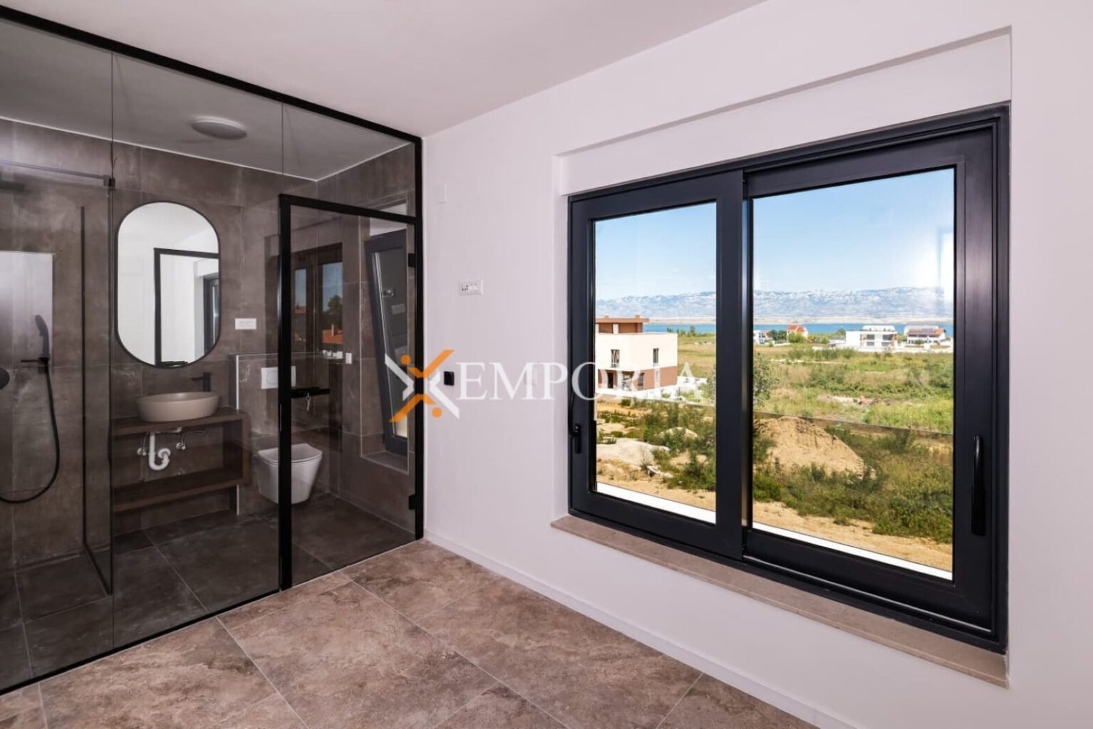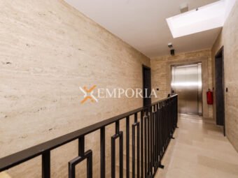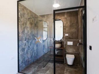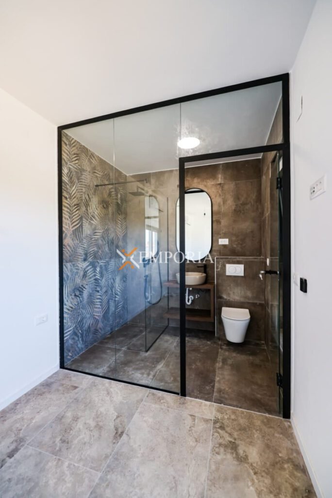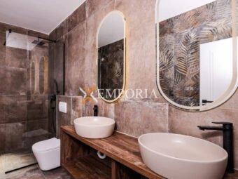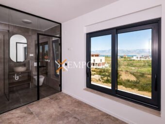 Gradnja zgrade ciglenim termoblokom s termoizolacijom fasade 10 cm stiropor. Podne obloge su pločice. Prozori su aluminijski s troslojnim staklom, električnim roletama i komarnicima. U svakoj spavaćoj sobi i u dnevnom boravku nalazi se klima uređaj. Osim toga, podno grijanje na struju u kupaonici. Nadalje, ulazna vrata stana su protuprovalna i protupožarna.
