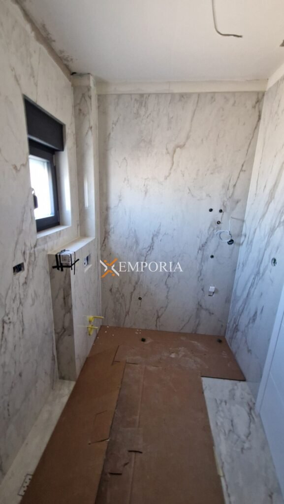 Izgradnja zgrade sastoji se od betonskog zida. Termoizolacija fasade je 10 cm stiropor. Prozori su od PVC materijala s komarnicima i elektroroletama. Podne obloge su pločice i parket. Klima uređaji u spavaćim sobama i dnevnom boravku – ukupno 3 uređaja. Nadalje, u cijelom stanu je postavljeno podno grijanje. Osim toga, postoji i dimnjak. Na kraju, ulazna vrata su protuprovalna i protupožarna.