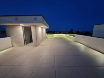 Dodatno apartmanu pripadaju dva vanjska parkirališna mjesta. Ukupna neto površina stana s pripacima iznosi 128,36 m2.