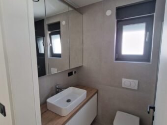 Podne obloge su pločice. Prozori su od PVC materijala s troslojnim staklom, električnim roletama i komarnicima. Klima uređaji u dnevnom boravku i spavaćim sobama. Osim toga, podno grijanje na struju u kupaonicama. Nadalje, ulazna vrata stana su protuprovalna i protupožarna.