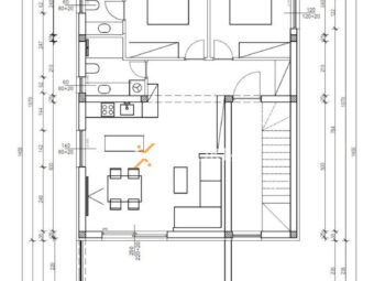 Ovo je apartman na 2. katu. Raspored prostorija čine hodnik, kupaonica, spavaća soba, spavaća soba s kupaonicom, kuhinja s blagovaonicom i dnevnim boravkom te natkrivena terasa. Dodatno apartmanu pripada dijelom natkrivena krovna terasa površine 86,94 m2. Neto korisna površina opisanih prostorija iznosi 101,54 m2.