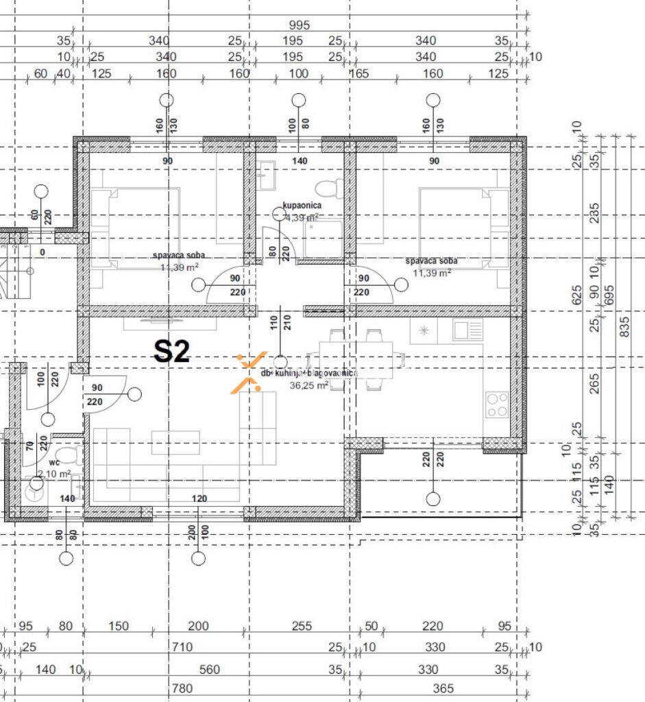Dodatno stanu pripada vrt od 99,81 m2, te dva parkirna mjesta ispred zgrade.