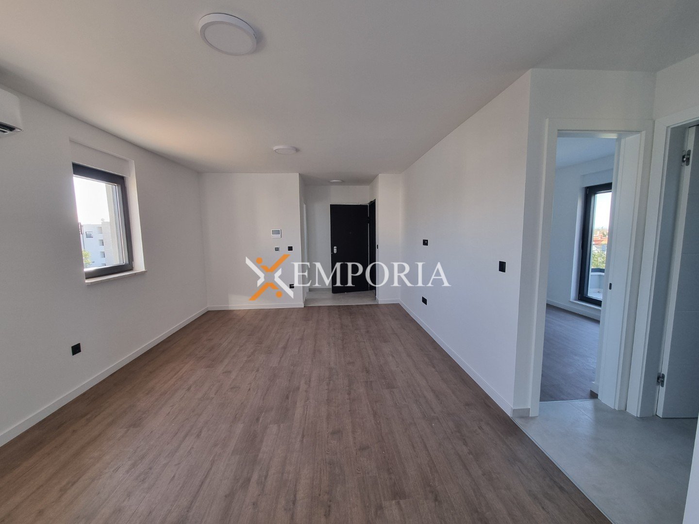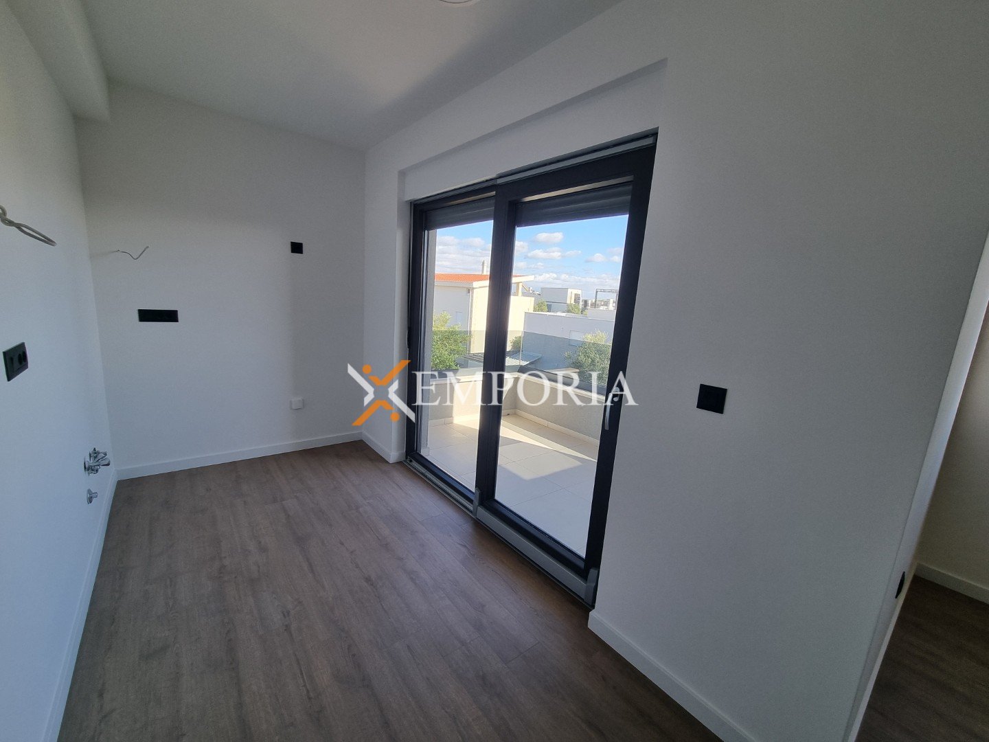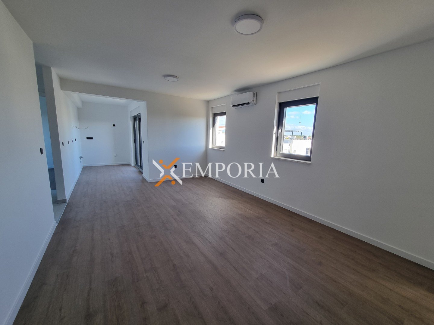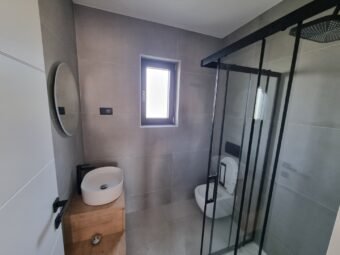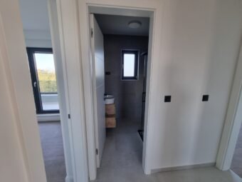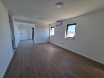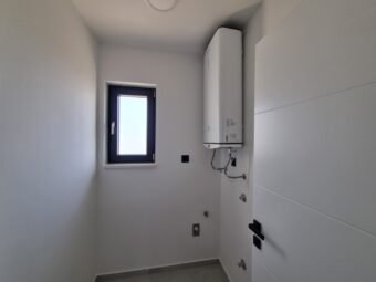 Gradnja zgrade vrši se ciglenim termo blokom. Termoizolacija fasade je stiropor debljine 8 cm. Prozori su od PVC materijala s troslojnim staklom, roletama i komarnicima. Podne obloge su pločice i laminat. Podno električno grijanje u cijelom stanu. Osim toga, u dnevnom boravku i spavaćim sobama bit će postavljeni klima uređaji. Nadalje, ulazna vrata stana su protuprovalna i protupožarna.