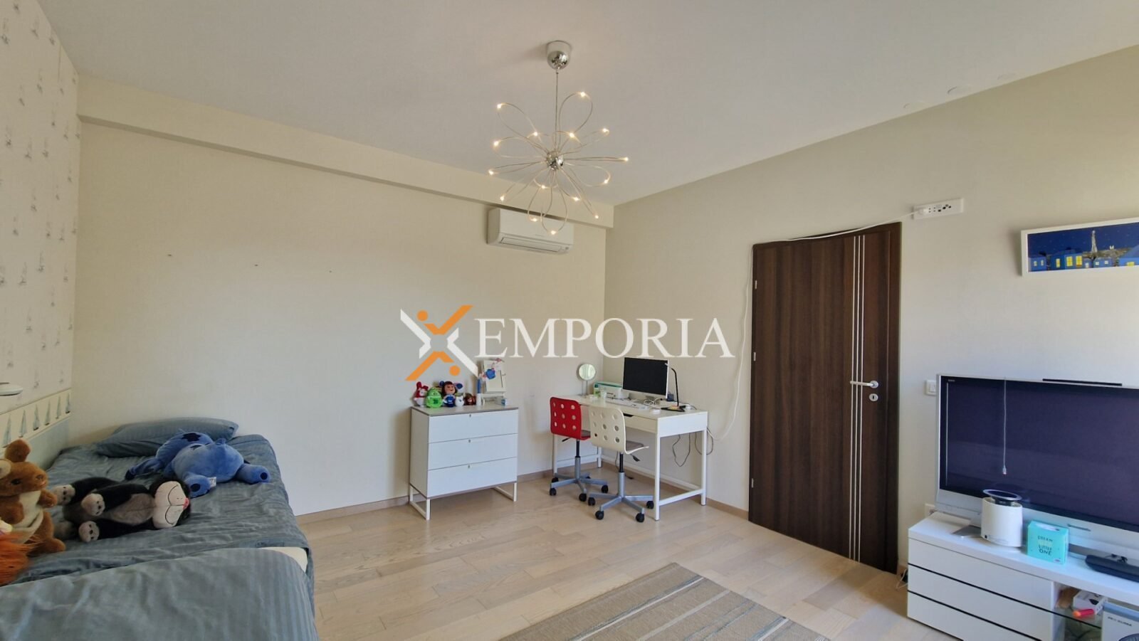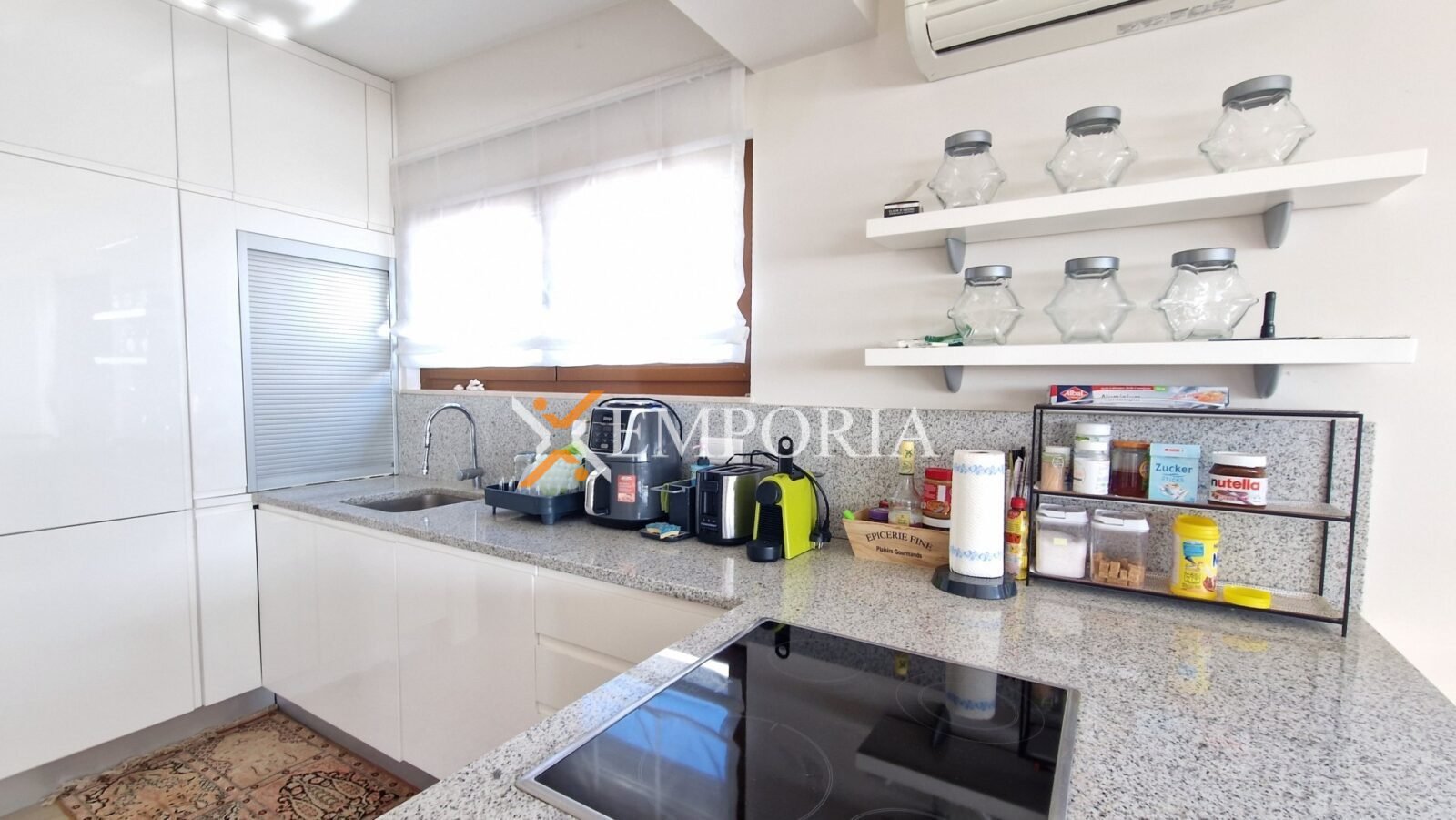 Stan je opremljen PVC stolarijom s brisolejima i griljama. Podne obloge su parket i pločice. Za grijanje i hlađenje prostorija postavljena su tri klima uređaja. Nadalje, ulazna vrata stana su protuprovalna i protupožarna.