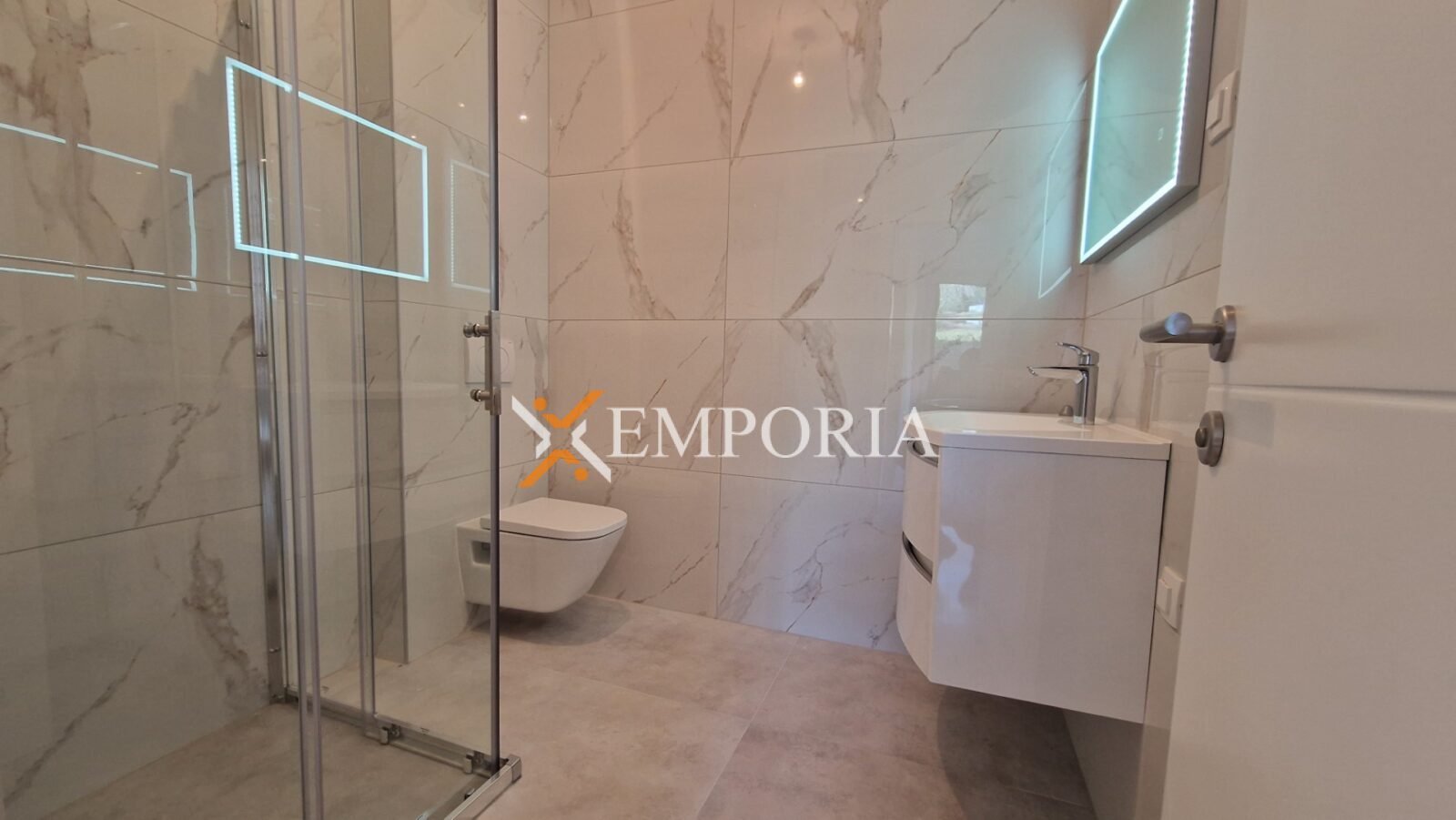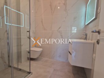 Dodatno, apartmanu pripadaju dva parkirališna mjesta i spremište u podrumu. Ukupna neto površina s pripacima iznosi 124,52 m2.