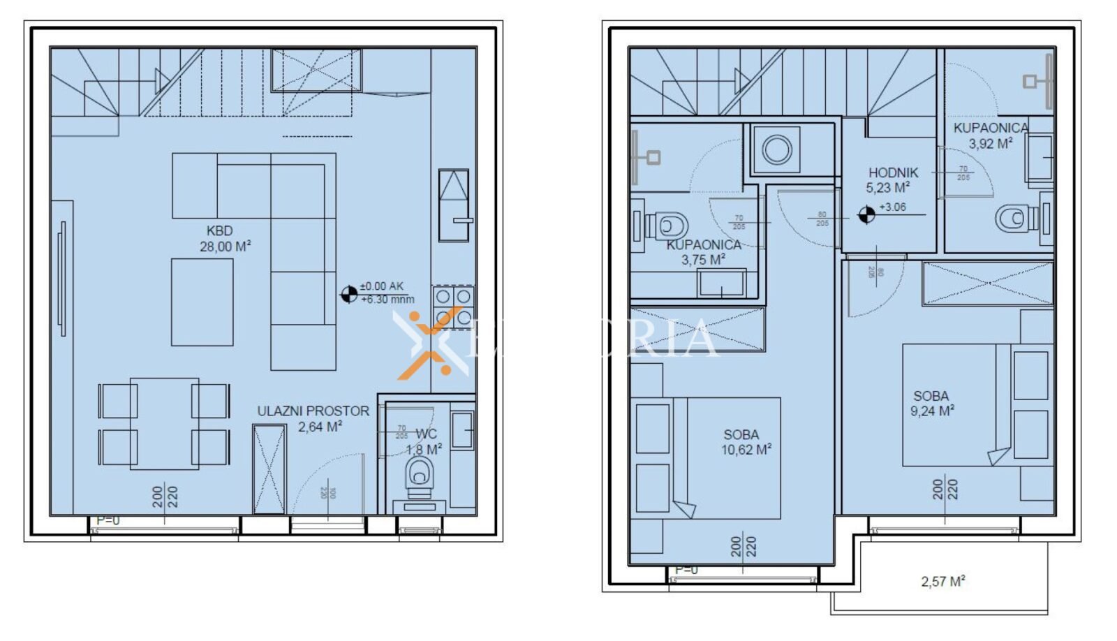 Ukupna neto površina stana s pripacima iznosi 74,04 m².