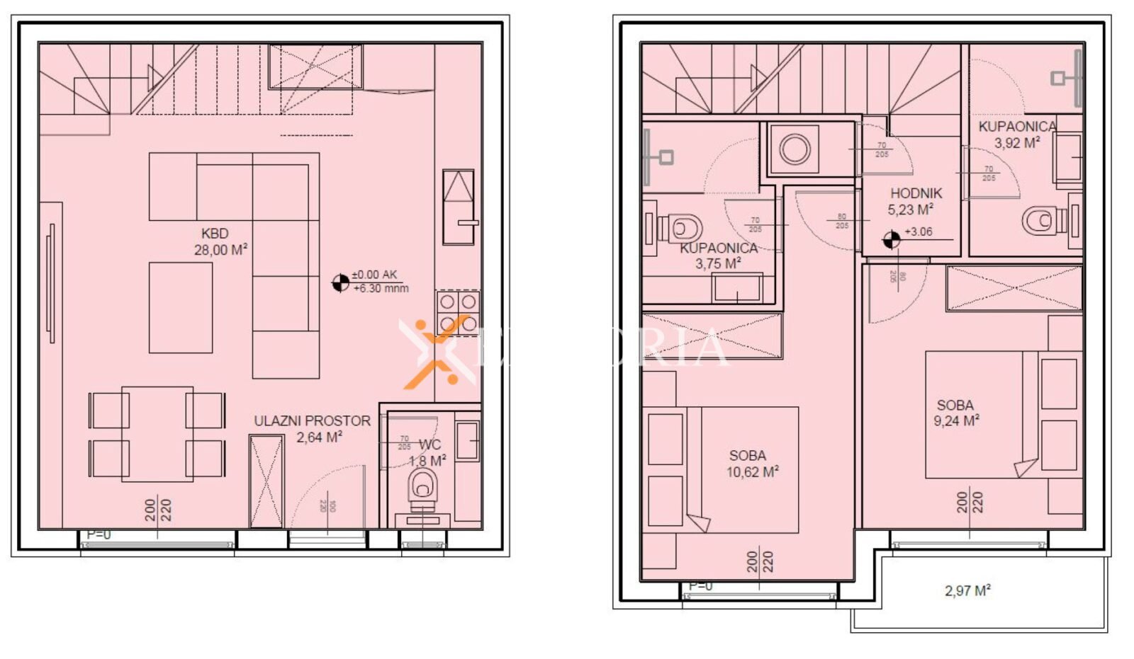 Dodatno apartmanu pripada parkirališno mjesto ispred zgrade i vrt površine 54,92 m².