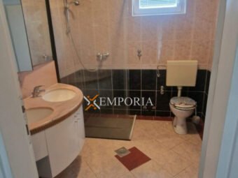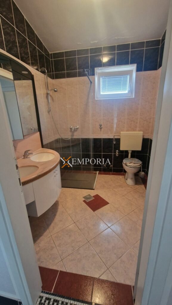 Zgrada je građena od cigle, a apartman je opremljen PVC stolarijom s griljama. Podovi su obloženi pločicama, a za hlađenje je ugrađen jedan klima uređaj. Apartman se prodaje s namještajem, što olakšava useljenje ili iznajmljivanje.