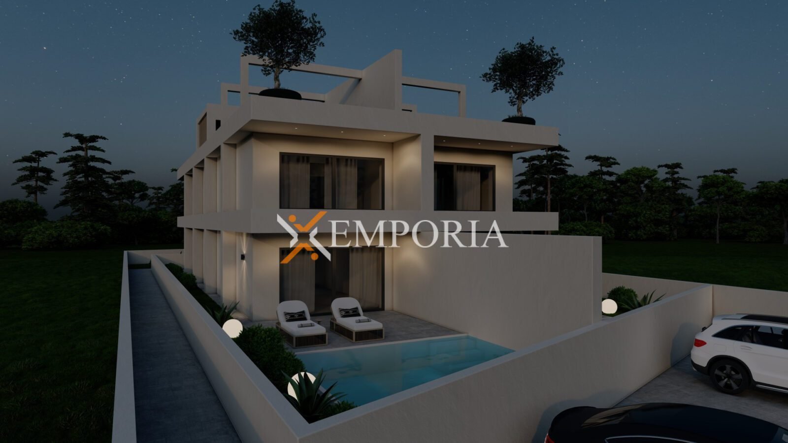 Zgrada se gradi od betonskih zidova s manjim udjelom termo blokova. Na okućnici je predviđen i vanjski roštilj.