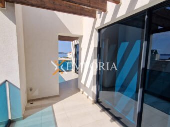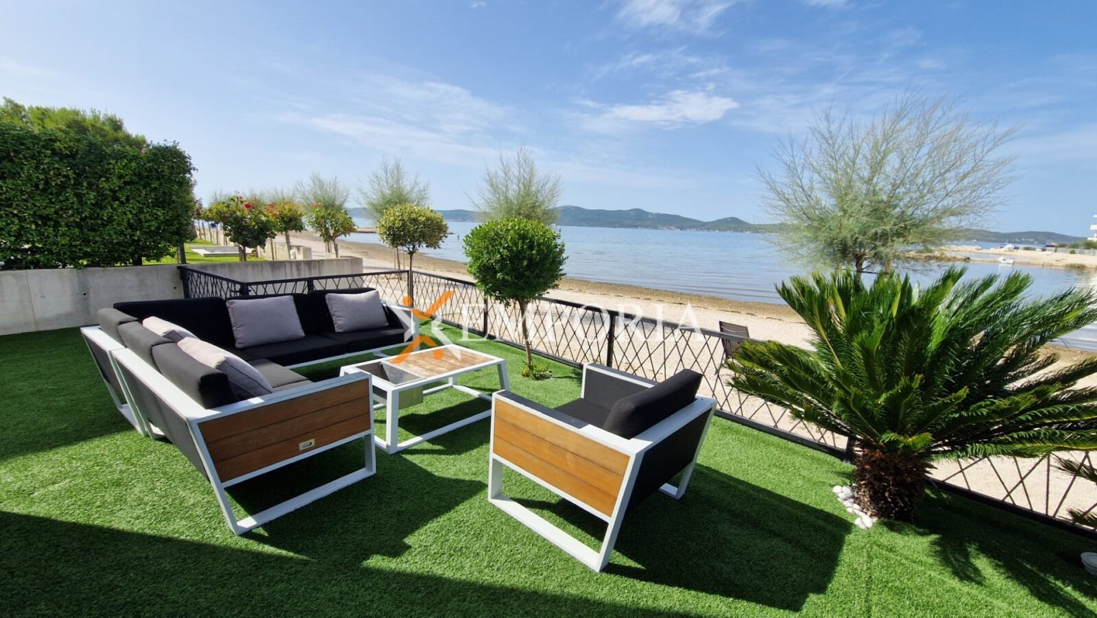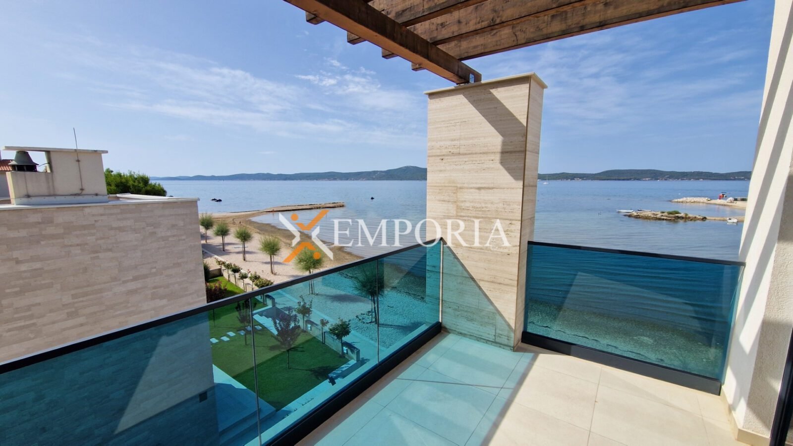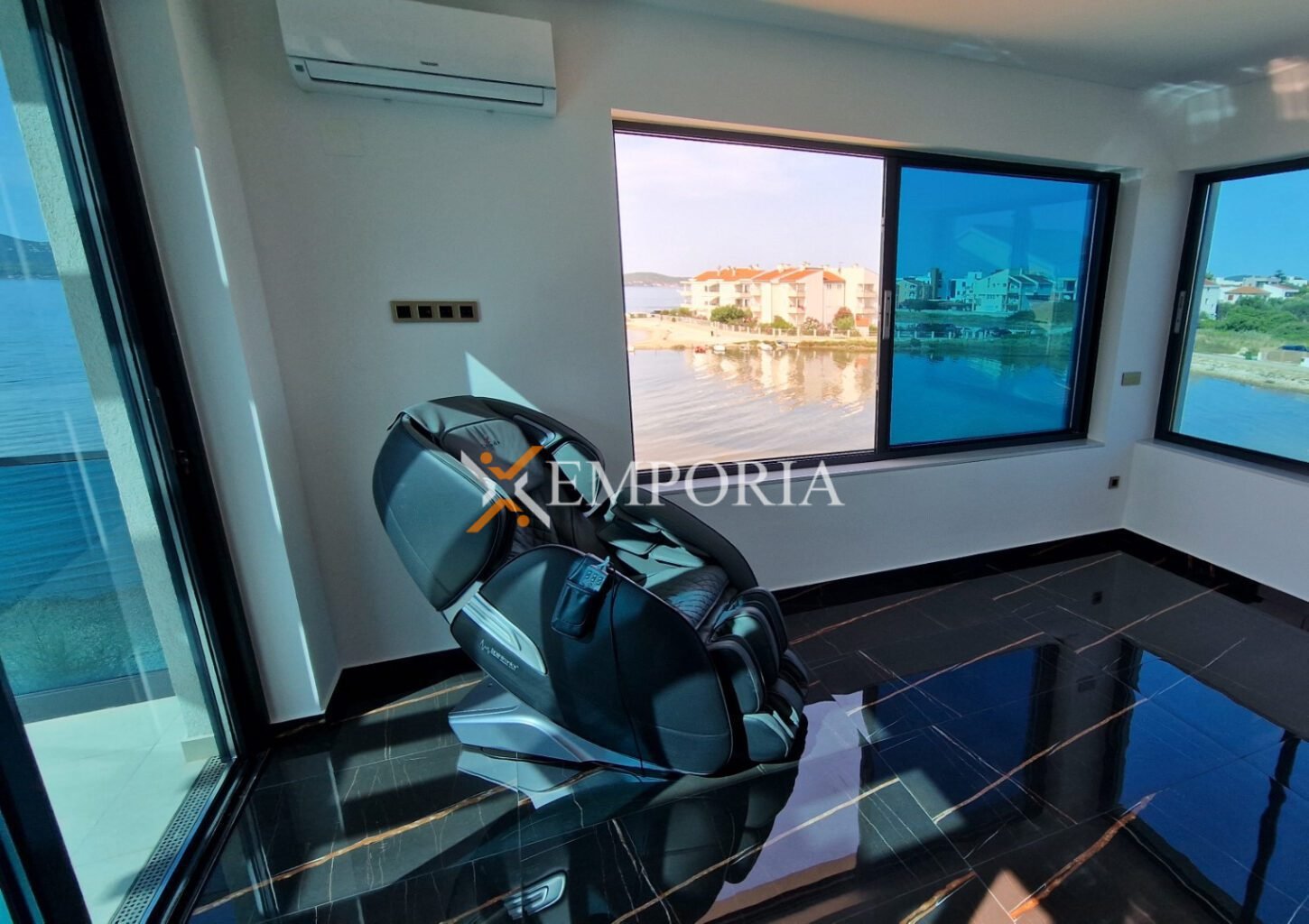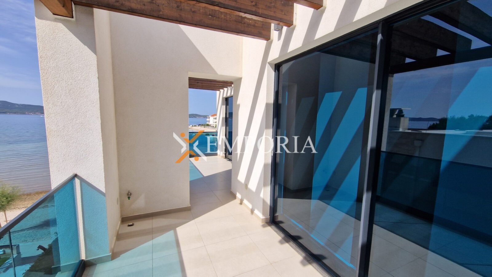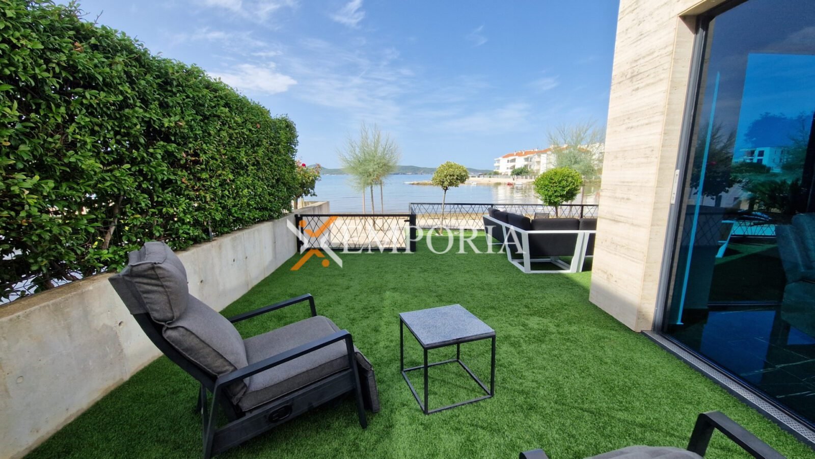 Na prodaju je moderan, potpuno namješten troetažni apartman u novogradnji smještenoj u prvom redu do mora u Sukošanu. Ukupna neto površina s pripacima iznosi 169,98 m², a dodatnu vrijednost pruža privatni vrt površine 110 m². Apartman se nalazi na odličnoj lokaciji, svega 15 m od mora i 900 m od centra mjesta.