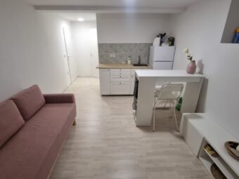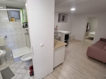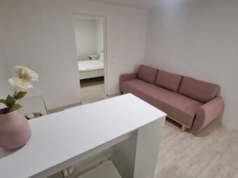 Apartman je namješten i renoviran 2023. godine, kada su okrečeni zidovi, postavljen novi laminat i zamijenjen namještaj.
