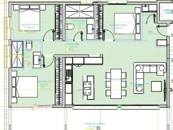 Neto korisna površina apartmana iznosi 120,21 m², dok ukupna neto površina s pripacima iznosi 125,21 m².