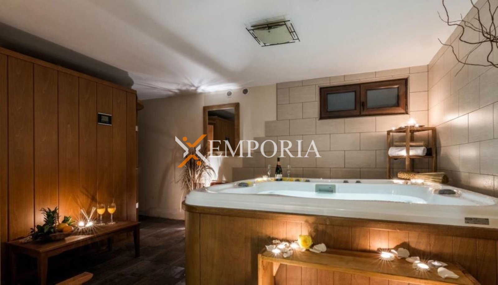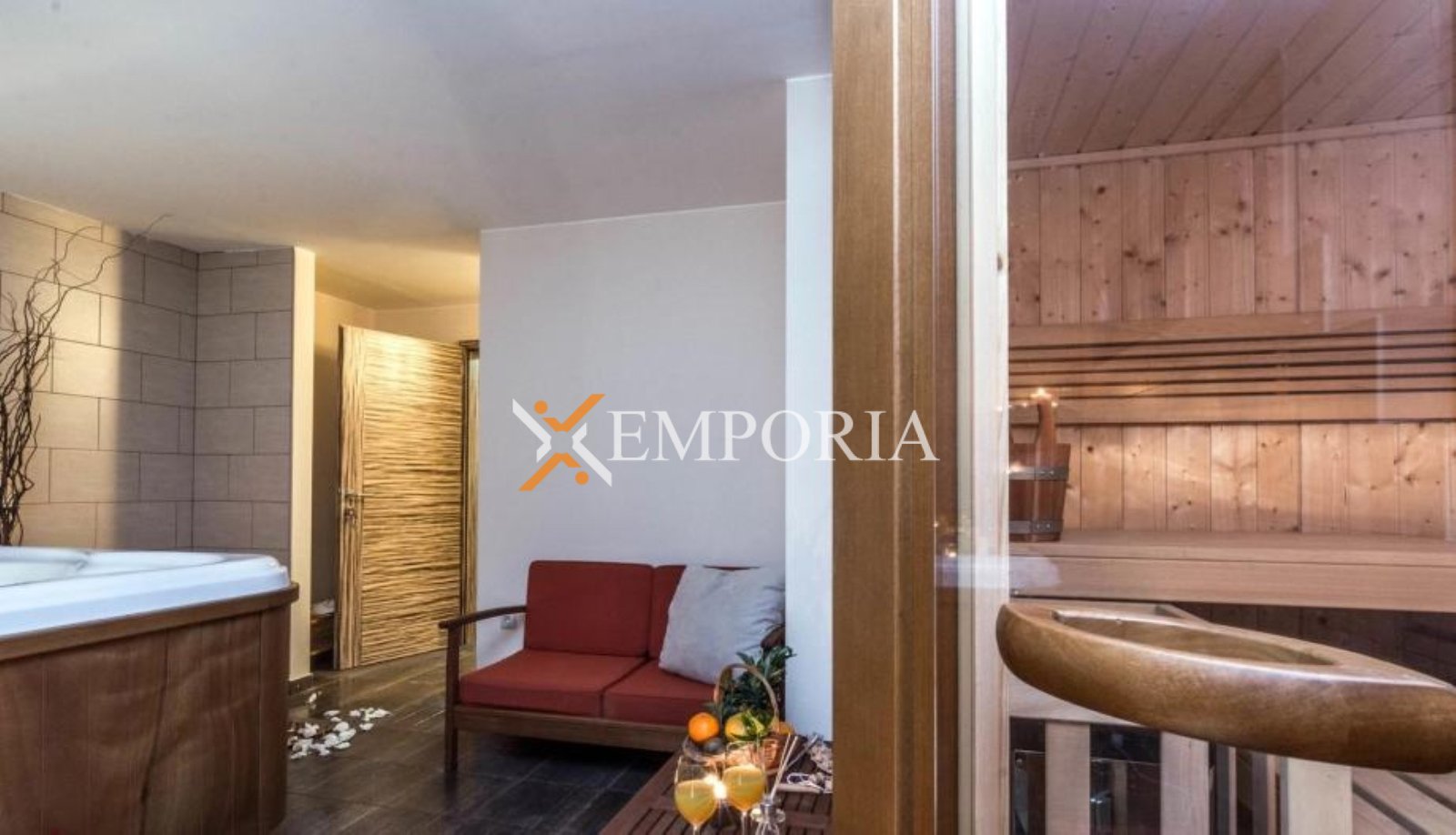 Raspored prostorija čine hodnik, spavaća soba, kupaonica, kuhinja s blagovaonicom i dnevnim boravkom. Uz to, apartman ima i strojarnicu, konobu, garderobu, jacuzzi i saunu s kupaonicom te spremište, a sve se nalazi u sklopu suterenskog prostora.