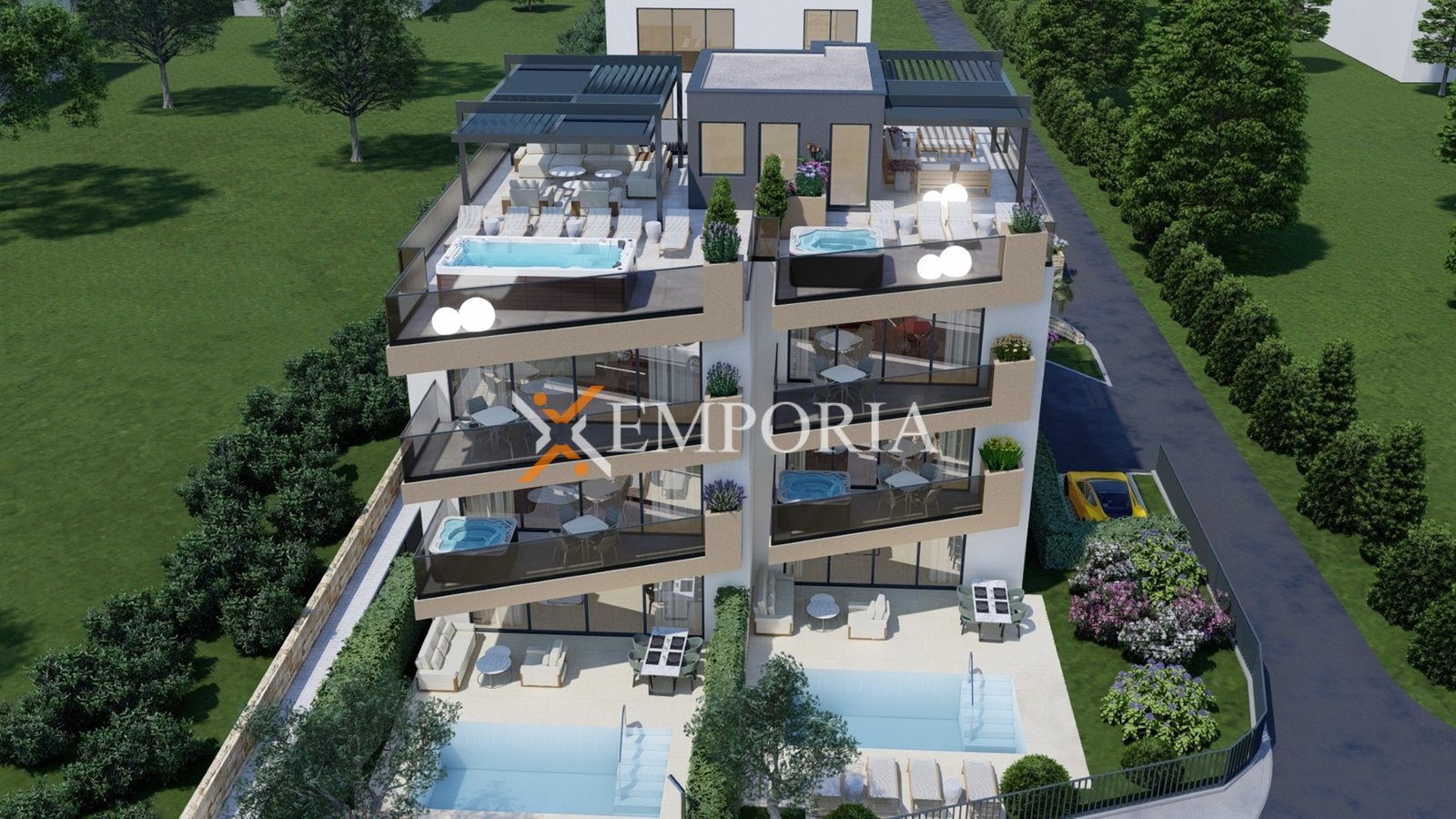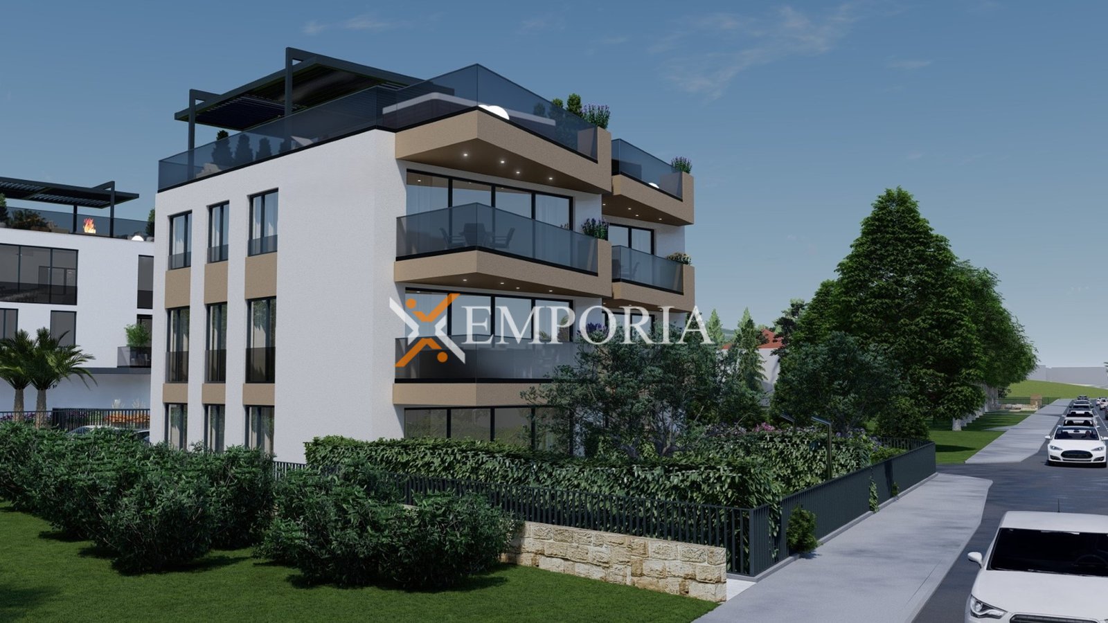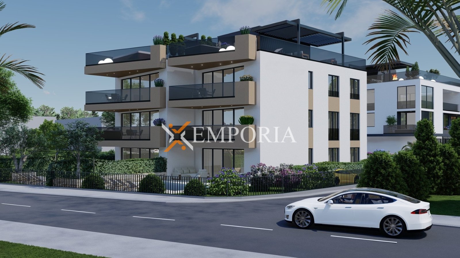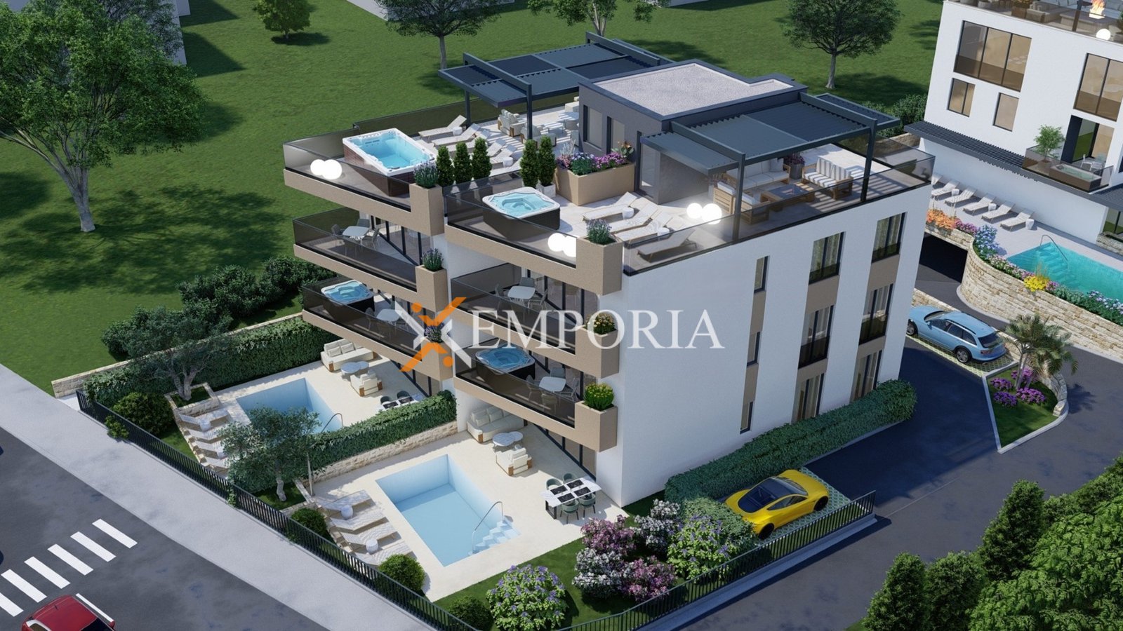 Apartman je funkcionalno projektiran, a raspored čine hodnik, dvije spavaće sobe, spavaća soba s vlastitom kupaonicom, dodatna kupaonica te kuhinja s blagovaonicom i dnevnim boravkom u otvorenom konceptu. Iz dnevnog dijela izlazi se na natkrivenu terasu, idealnu za boravak na otvorenom tijekom cijele godine. Neto korisna površina opisanih prostorija iznosi 85,46 m², dok ukupna neto površina s pripadcima iznosi 88,01 m². Apartmanu dodatno pripada jedno parkirno mjesto.