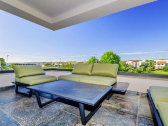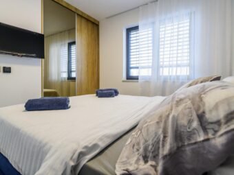 Stanu pripadaju dva vanjska natkrivena parkirna mjesta, što predstavlja značajnu prednost na ovoj atraktivnoj lokaciji u blizini mora. Zahvaljujući funkcionalnom rasporedu i kvalitetnoj izvedbi, ova nekretnina predstavlja izvrsnu priliku za obiteljski život ili sigurnu investiciju u turističke svrhe.
