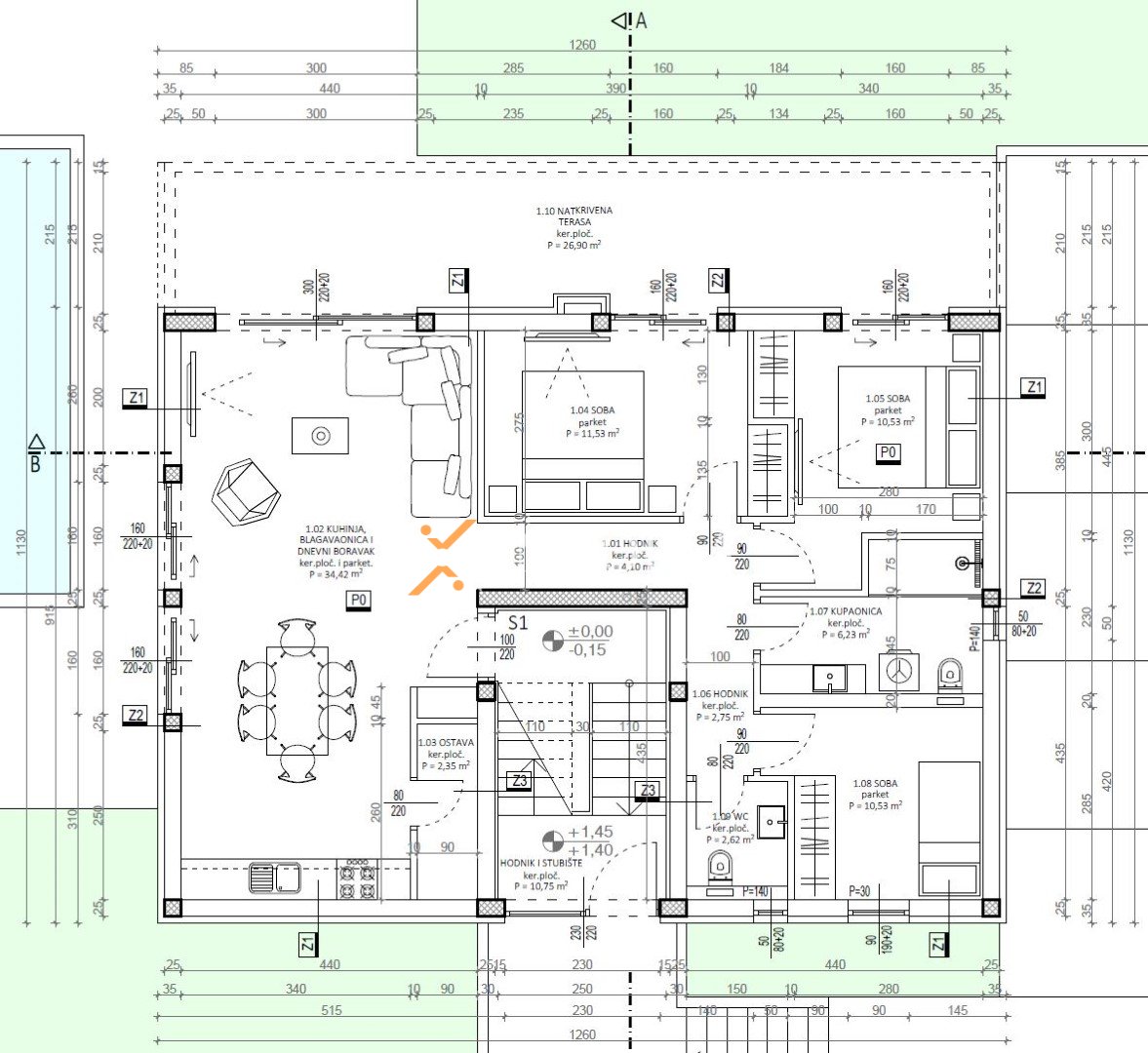 Dodatnu vrijednost nekretnini daje prostrani vrt površine cca 180 m2, od čega će 40 m2 biti popločano i djelomično natkriveno, što omogućuje ugodan boravak na otvorenom tijekom cijele godine. Stanu pripadaju i dva parkirna mjesta.