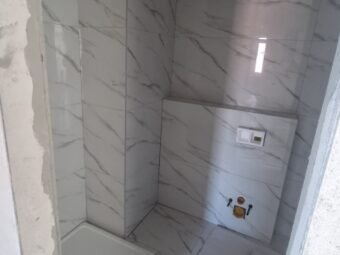 Gradnja je kvalitetna, betonski zidovi s fasadom od 10 cm kamene vune. Podovi su obloženi pločicama i parketom. Stolarija je PVC s troslojnim staklom, roletama i komarnicima. Ulazna vrata su protuprovalna i protupožarna. Objekt ima novi ravni betonski krov.