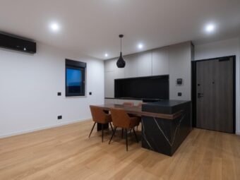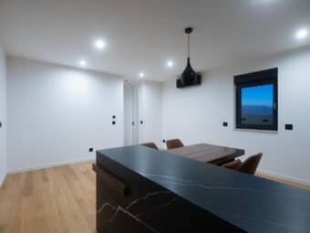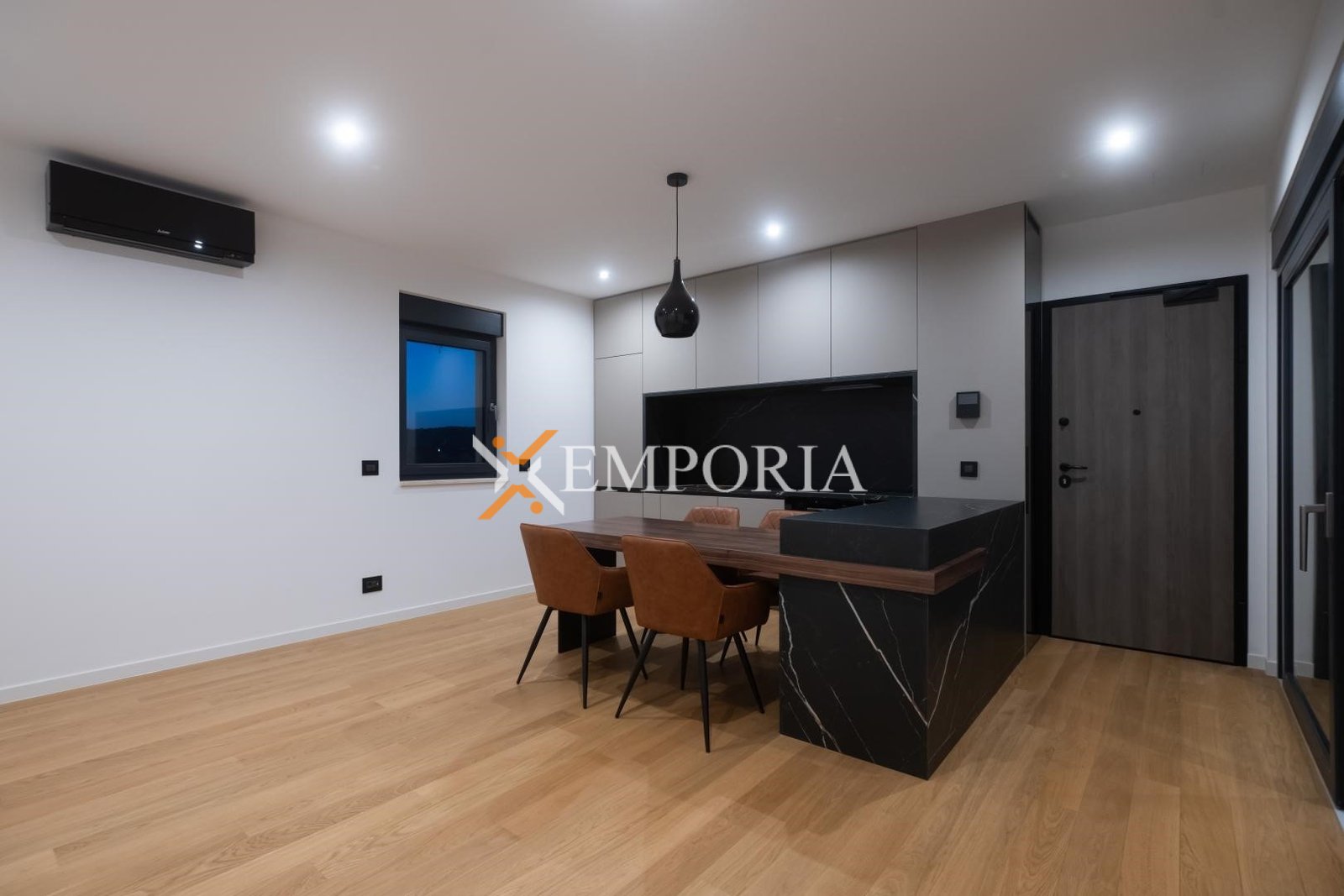 Apartman je opremljen podnim električnim grijanjem u cijelom prostoru, dok tri crne dizajnerske Mitsubishi klima jedinice osiguravaju ugodnu temperaturu tijekom cijele godine. Kuhinja s Bosch aparatima uključena je u cijenu, kao i stol s četiri sjedalice te dva vanjska stola sa stolicama za šest osoba.
