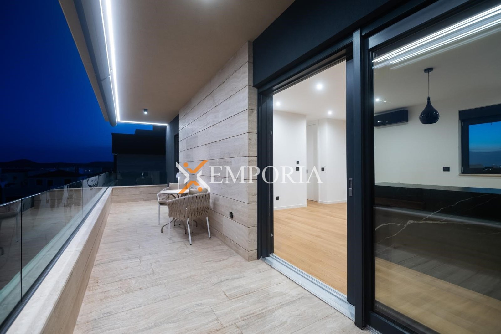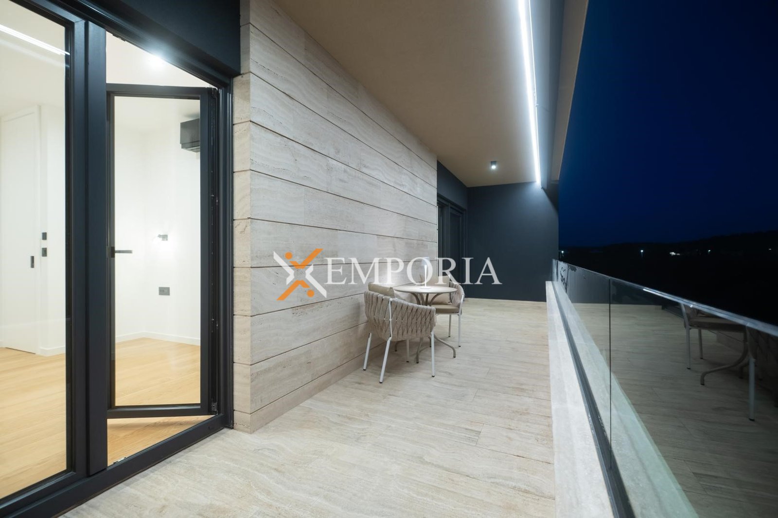 Gradnja je izvedena ciglenim termo blokom uz fasadu sa 10 cm stiropora. PVC stolarija s troslojnim staklom, električnim roletama i komarnicima pruža dodatnu toplinsku i zvučnu izolaciju. Ulazna vrata su protuprovalna i protupožarna, dok ravni betonski krov dodatno naglašava suvremeni arhitektonski stil.