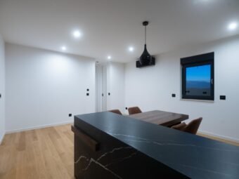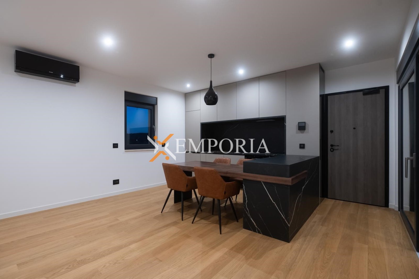 Apartman je opremljen podnim električnim grijanjem u cijelom prostoru, dok dvije crne dizajnerske Mitsubishi klima jedinice osiguravaju ugodnu temperaturu tijekom cijele godine. Kuhinja s Bosch aparatima uključena je u cijenu, kao i stol s četiri sjedalice povezan s kuhinjom.