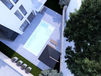 Moderan apartman u prizemlju novogradnje u Petrčanima, smješten u drugom redu od mora, svega 30 m udaljen od obale, dok je centar mjesta na 500 m. Ova nekretnina predstavlja izvrsnu priliku za miran život ili turistički najam, a dodatno se ističe privatnim vrtom i bazenom.