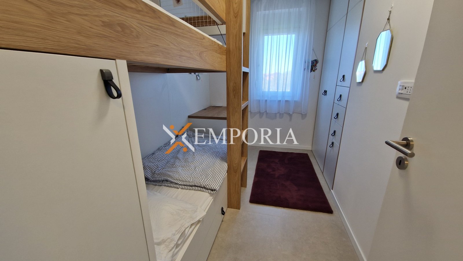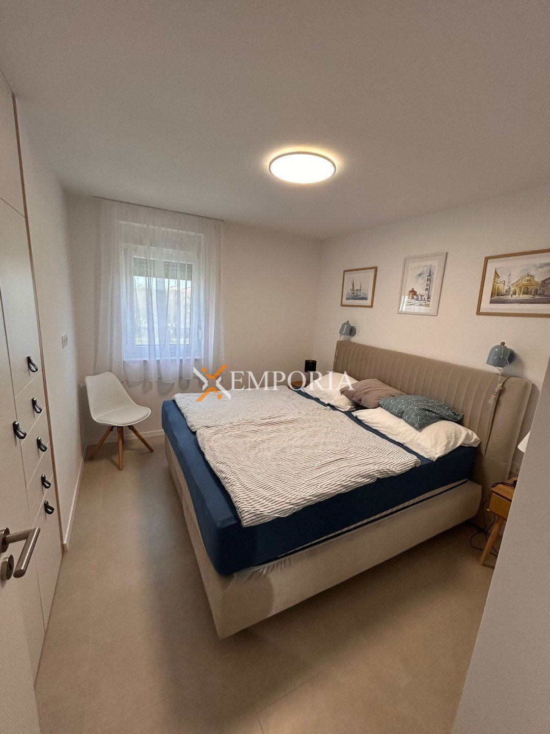 Prodaje se namješten penthouse u novogradnji u Privlaci, smješten na atraktivnoj lokaciji u drugom redu od mora, svega 70 m od mora i 1 km od centra mjesta. Nekretnina se ističe odličnim pogledom na more, velikom krovnom terasom i modernom opremom, što je čini idealnom za luksuzan boravak ili investiciju.