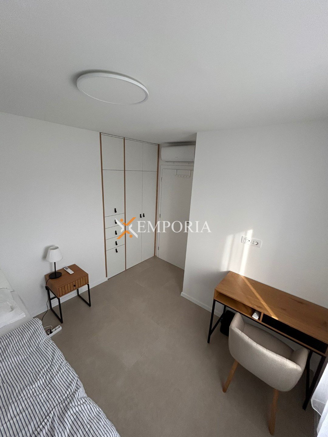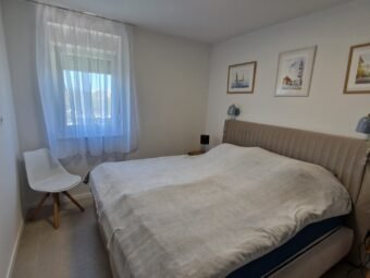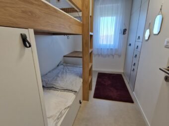 Apartman se nalazi na drugom katu. Raspored prostorija čine hodnik, dvije spavaće sobe, spavaća soba s vlastitom kupaonicom, dodatna kupaonica, ostava, kuhinja s blagovaonicom i dnevnim boravkom te natkrivena terasa. Neto korisna površina opisanih prostorija iznosi 134,34 m2, dok ukupna neto površina s pripacima iznosi 136,84 m2.