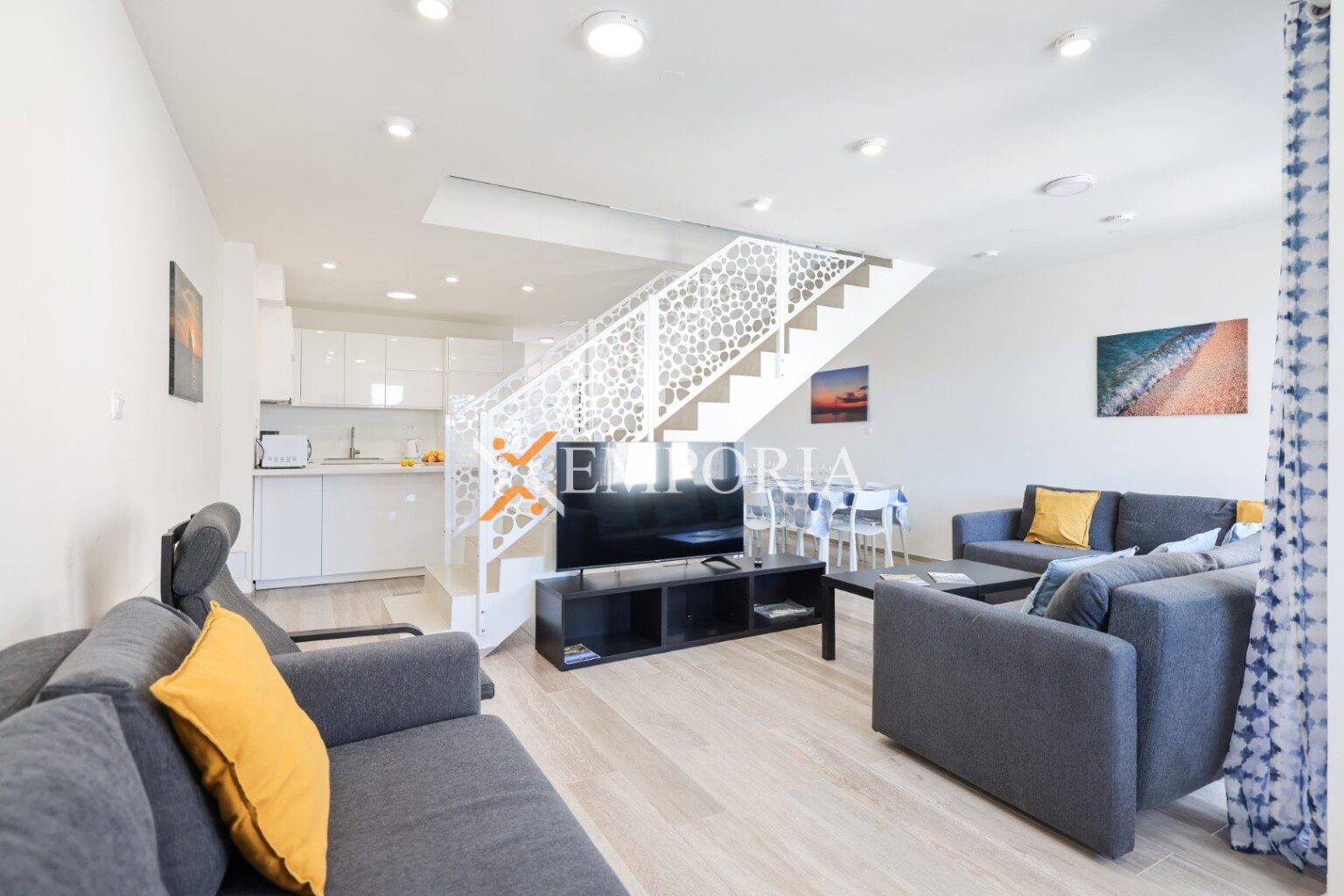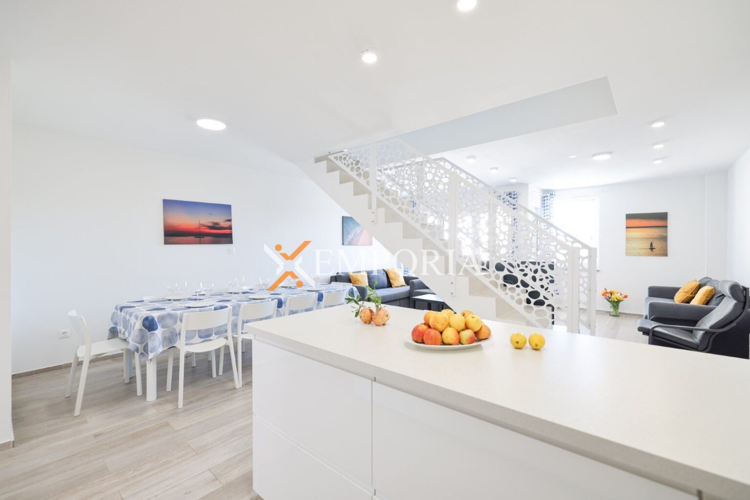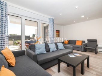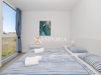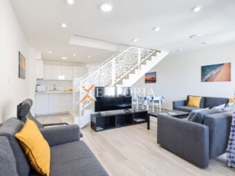 Prodaje se višeetažni apartman s pogledom na more u Privlaci. Sastoji se od prizemlja, 1. kata, 2. kata i krovne terase. Ovakav apartman se može usporediti s kućom u nizu. Udaljen je svega 90 m od mora. Prilaz moru je direktan.