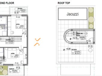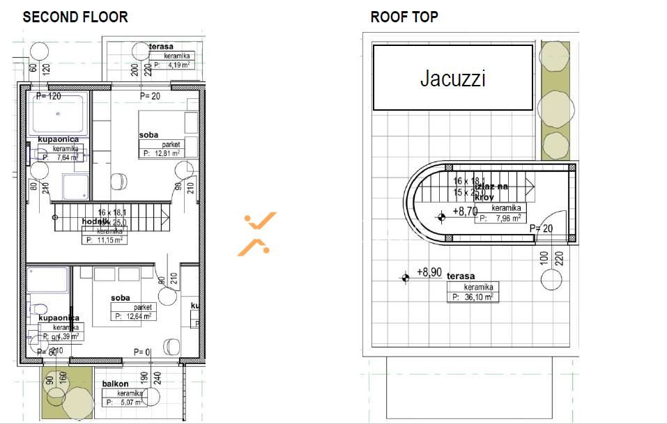 Nadalje, unutarnje stepenice vode na krovnu terasu na kojoj se nalazi jacuzzi od 15,84 m2.