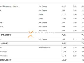 Dodatno uz nabrojano ovom apartmanu pripada spremište u podrumu zgrade veličine 17,80 m2. Pored toga stanu pripadaju još i dva parkirališna mjesta ispred zgrade.