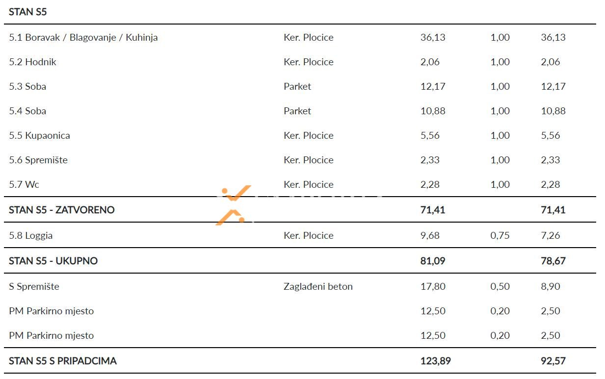 Slijedom navedenog, ukupna neto korisna površina stana sa svim pripacima iznosi 92,57 m2.