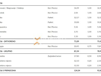 Dodatno uz nabrojano ovom apartmanu pripada spremište u podrumu zgrade veličine 17,80 m2. Pored toga stanu pripadaju još i dva parkirališna mjesta ispred zgrade.