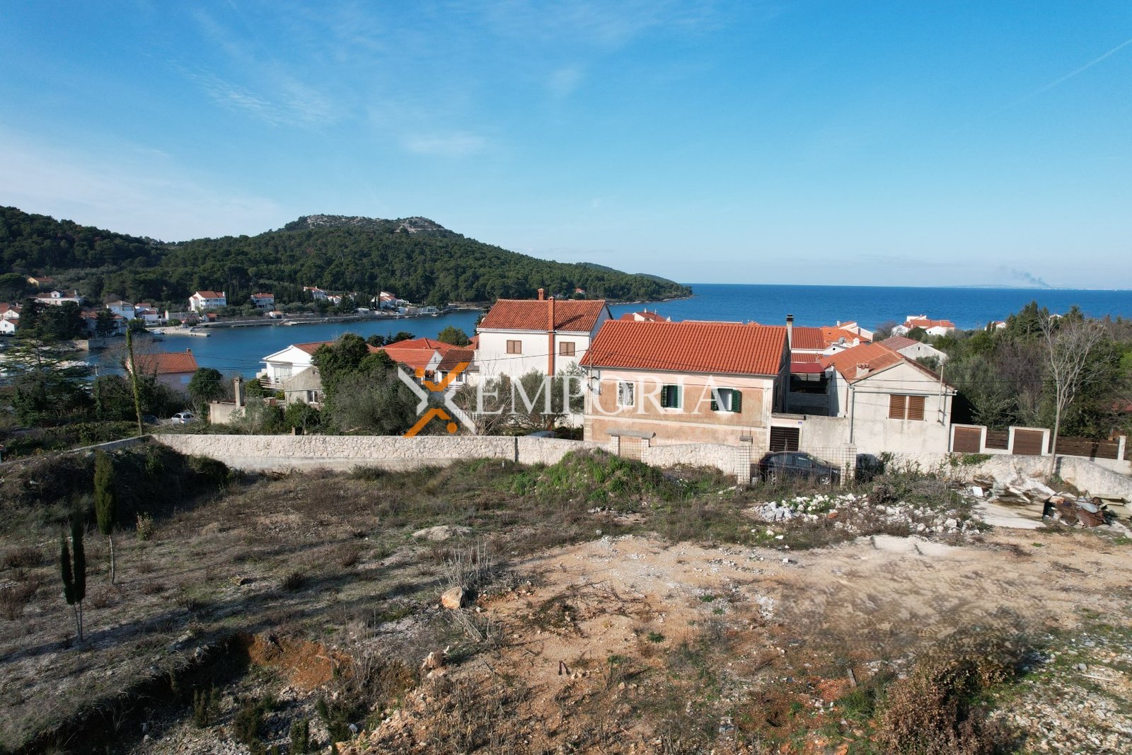 Na prodaju je atraktivno građevinsko zemljište površine 2.118 m², udaljeno svega 100 m od mora i 200 m od centra mjesta. Zemljište ima pogled na more te pristup s javnog asfaltiranog puta, širine oko 40 m i dužine približno 53 m. Orijentirano je prema zapadu, što ga čini pogodnim za gradnju objekata s prekrasnim zalascima sunca.