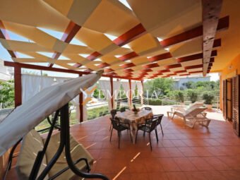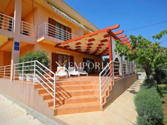 Prodaje se kuća sa sedam apartmana u Sukošanu. Kuća ima površinu od ca. 390 m2 i izgrađena je na površini od 1952 m2. Kuća s pogledom na more nalazi se samo 150 m od prekrasne plaže. Kuća je izgrađena 2009. g. U podrumu kuće nalazi se lijepi apartman sa saunom. U prizemlju kuće nalaze se dva dvosobna apartmana ca. 70 m2, dok su na prvom katu smještena još 4 apartmana.