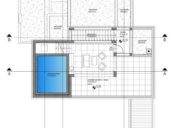 Dvorište kuće će krasiti bazen i ljetna kuhinja. Bazen s toplinskom pumpom za zagrijavanje vode.