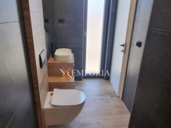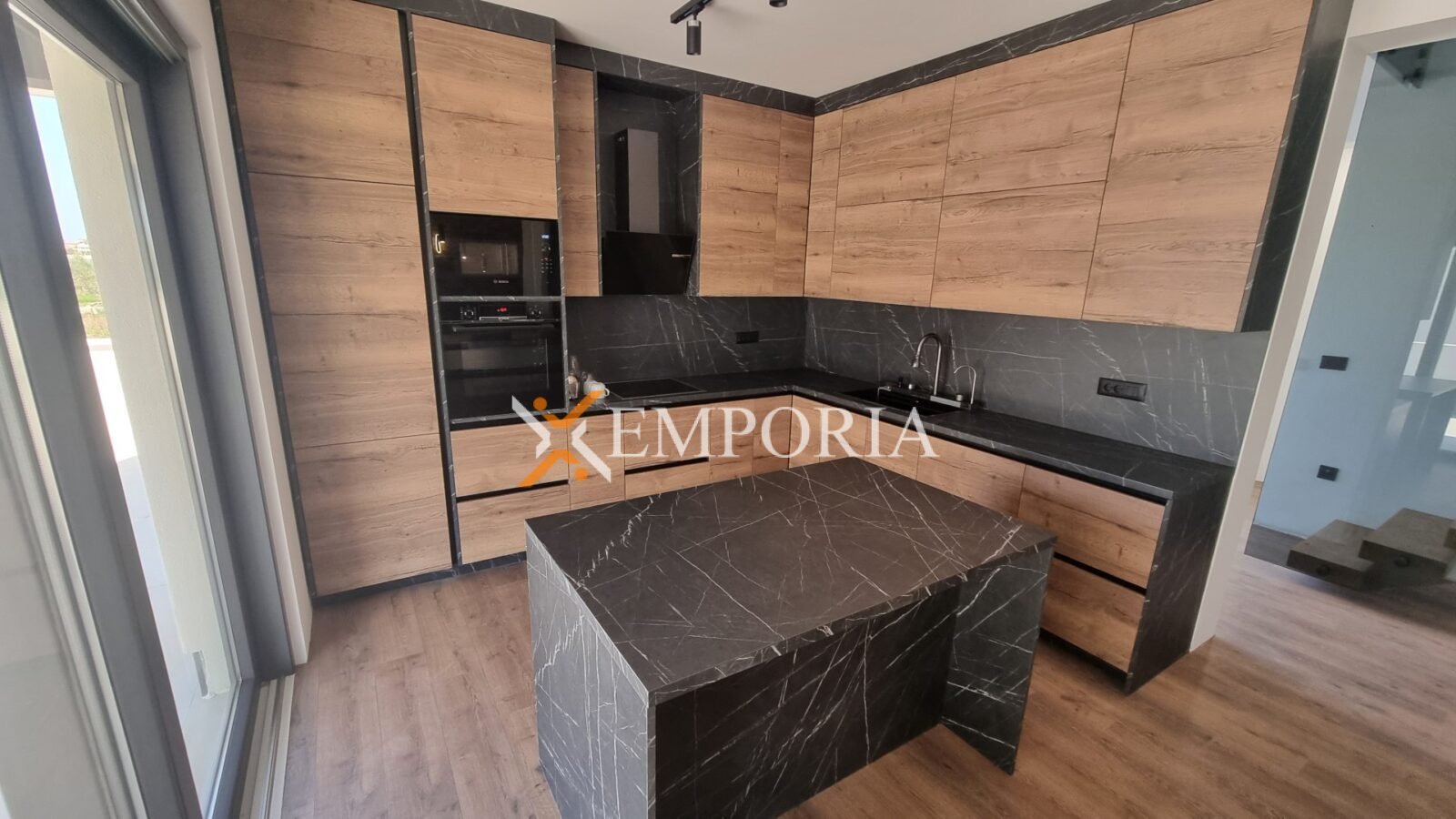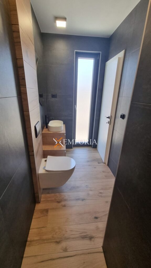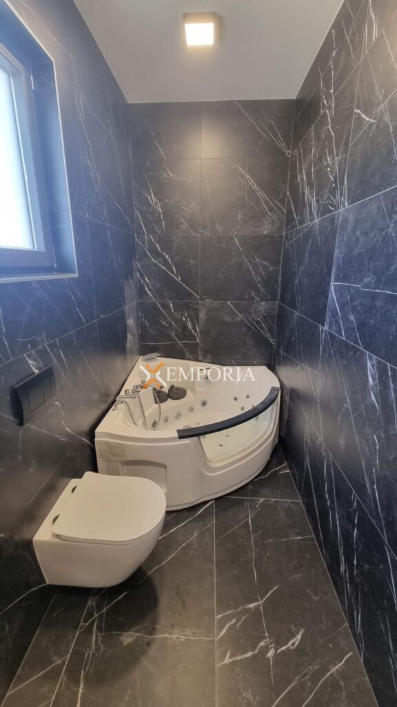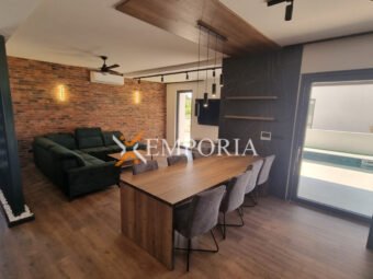 Gradnja je izvedena ciglenim termo blokom s termoizolacijom fasade 10 cm stiropor. Prozori su PVC s troslojnim staklom i komarnicima. Podne obloge su pločice i laminat. Nadalje, provedeno je podno električno grijanje kroz cijelu kuću. Osim toga, klima uređaji se nalaze u dnevnom boravku i svim spavaćim sobama. U dvorištu kuće je roštilj. Nadalje, ulazna vrata kuće su protuprovalna. Kuća se prodaje u potpunosti namještena.