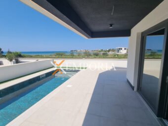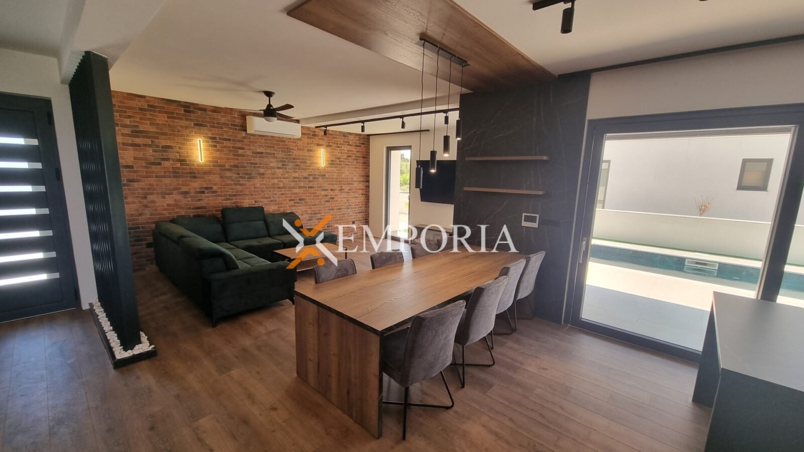 Prodaje se moderna kuća s bazenom u Privlaci. Radi se o kvalitetnoj novogradnji. Iz kuće se pruža odličan pogled na more.